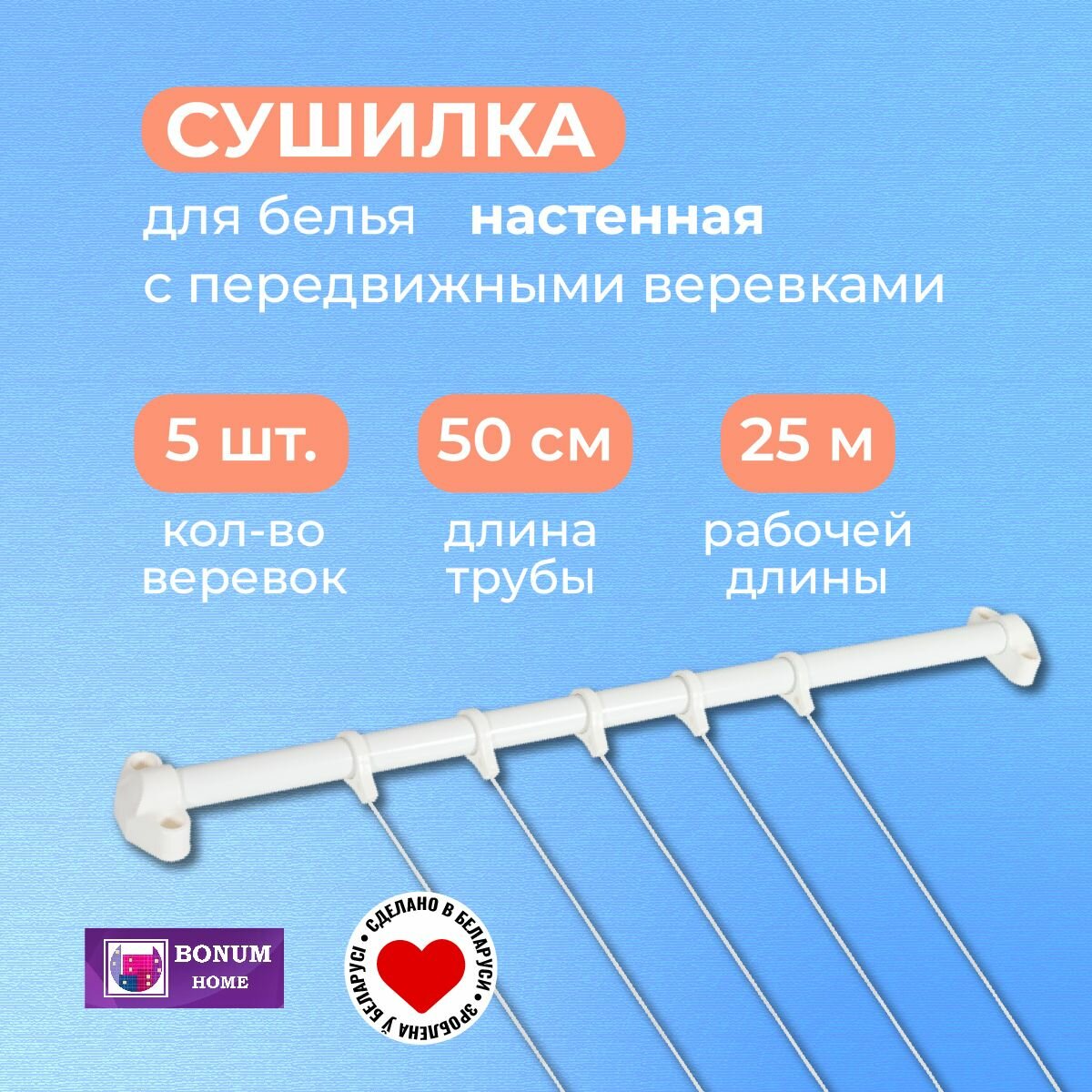 Купить Сушилка настенная с 5 передвижными веревками, белая. Беларусь.