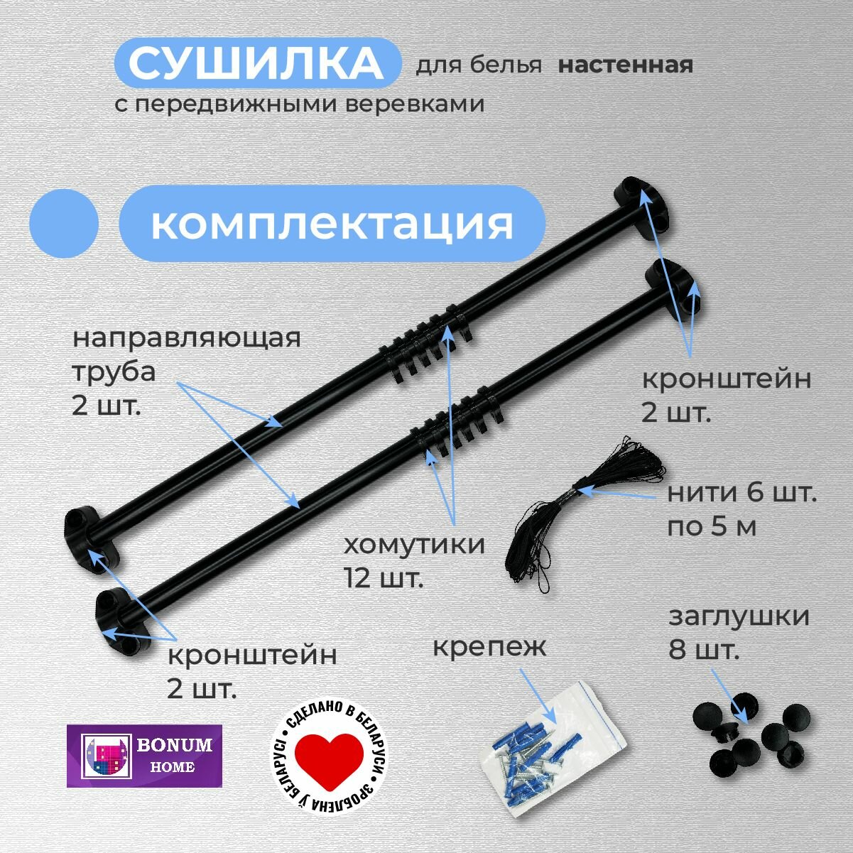СохранитьСушилка для белья с 6-передвижными веревками, черная. Беларусь. интересное: