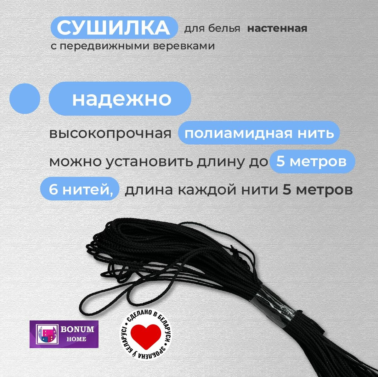 Сушилка настенная с 5 передвижными веревками, графитовая. Беларусь.