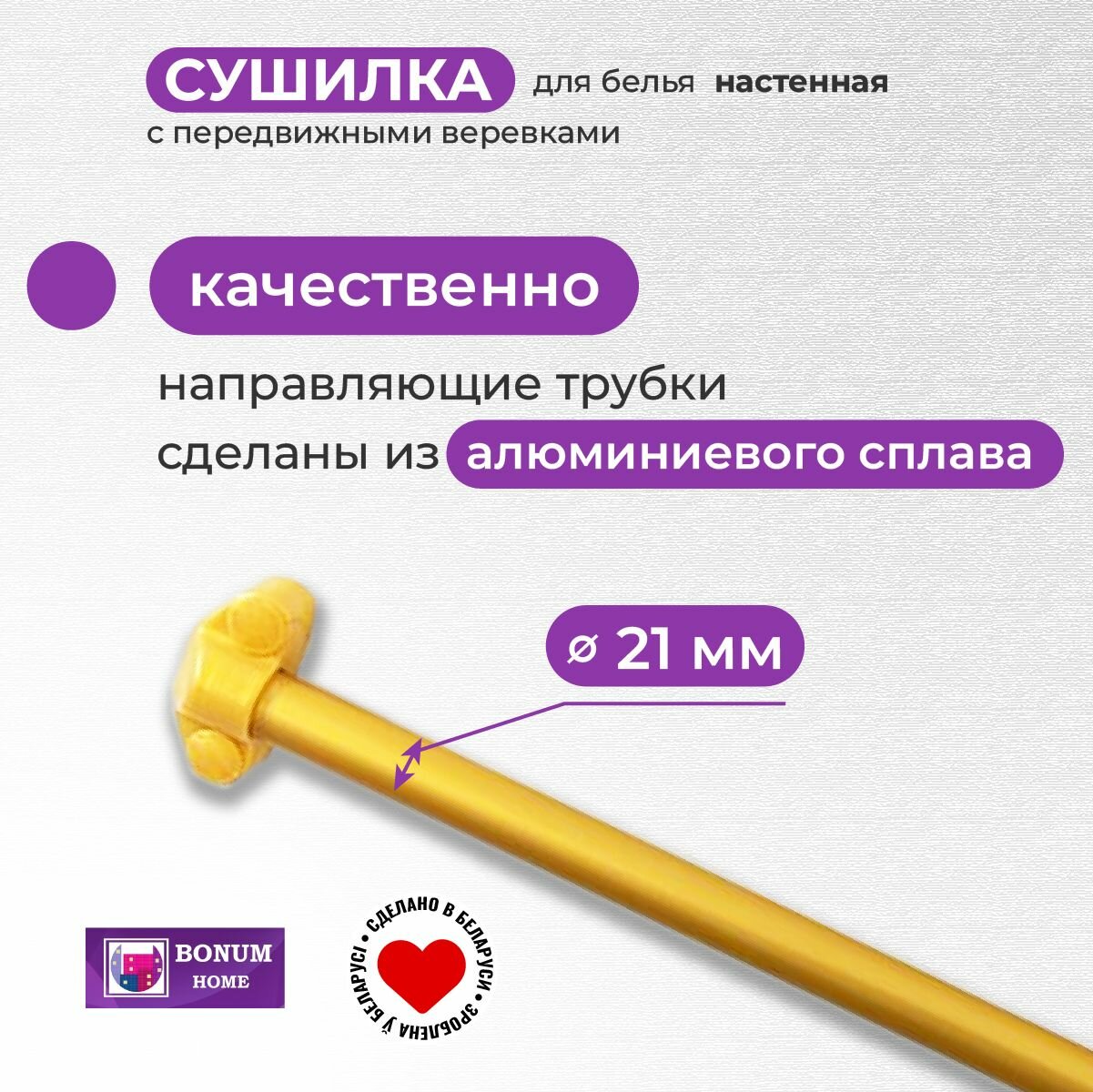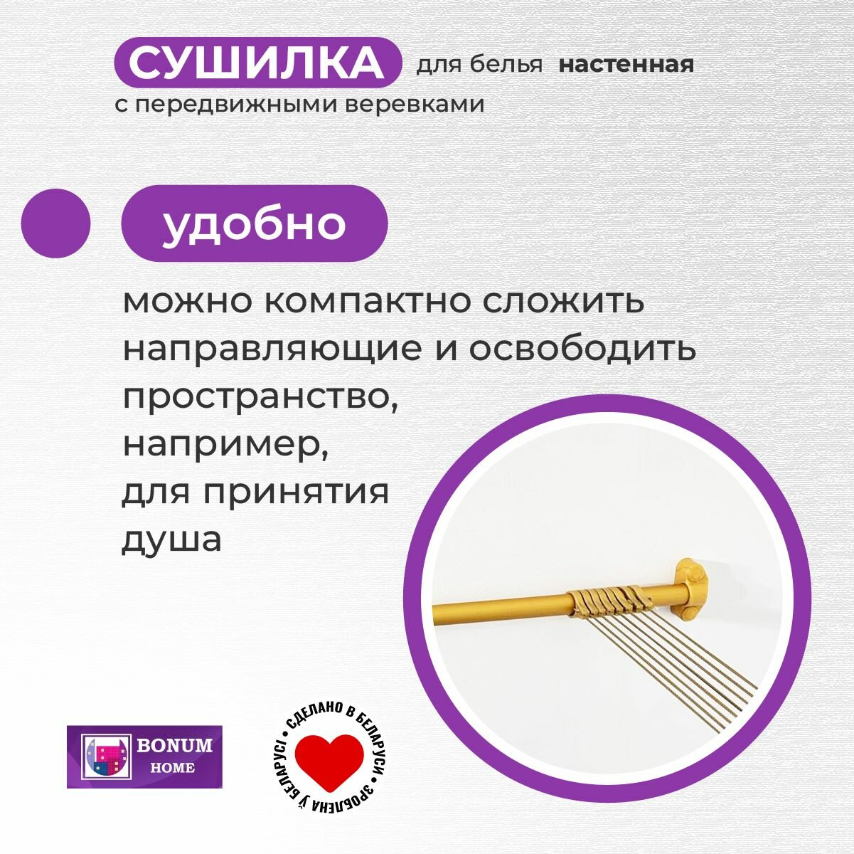 Сушилка настенная с 5 передвижными веревками, золотая. Беларусь.