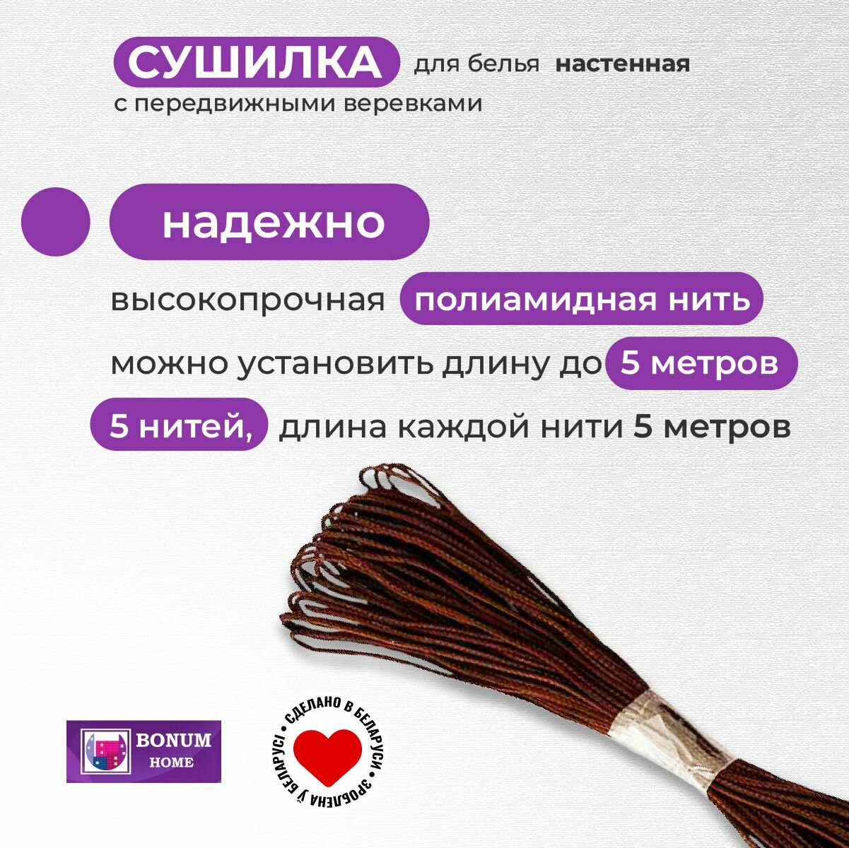Купить Сушилка настенная с 5 передвижными веревками, шоколад. Беларусь.