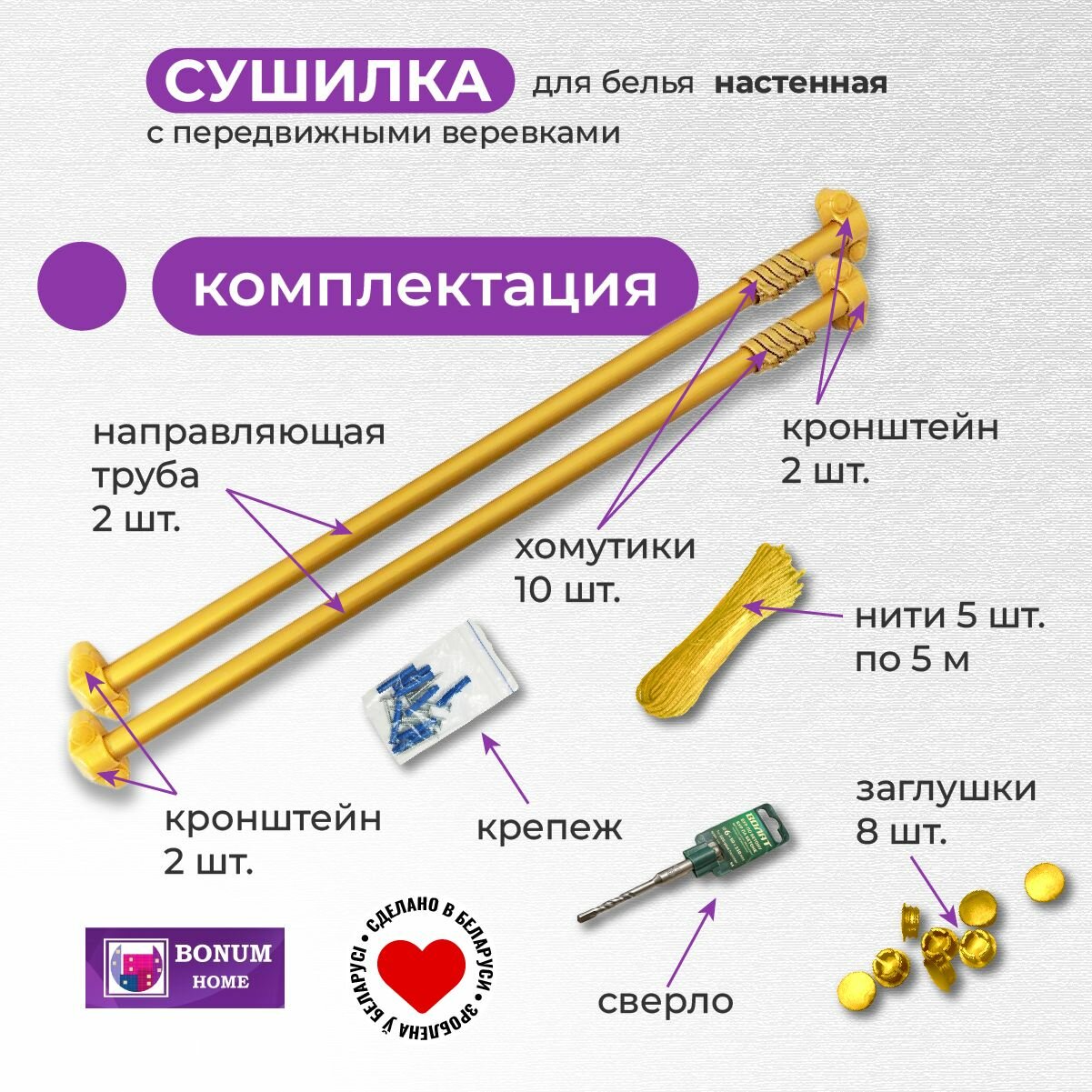 СохранитьСушилка настенная с 5 передвижными веревками, золотая. Беларусь. интересное: