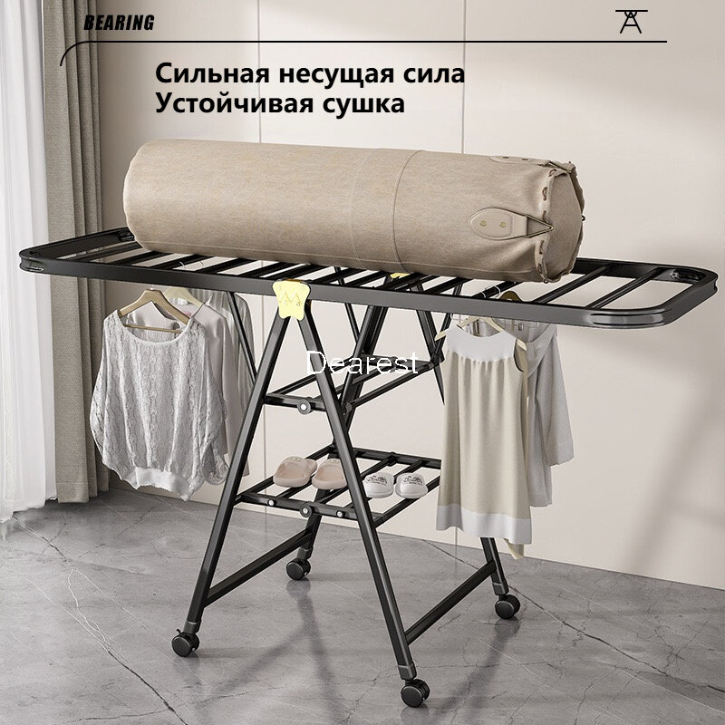 Сушилка для белья, напольная, складная, углеродная сталь, Чёрный, карданный колесо,160x95 см