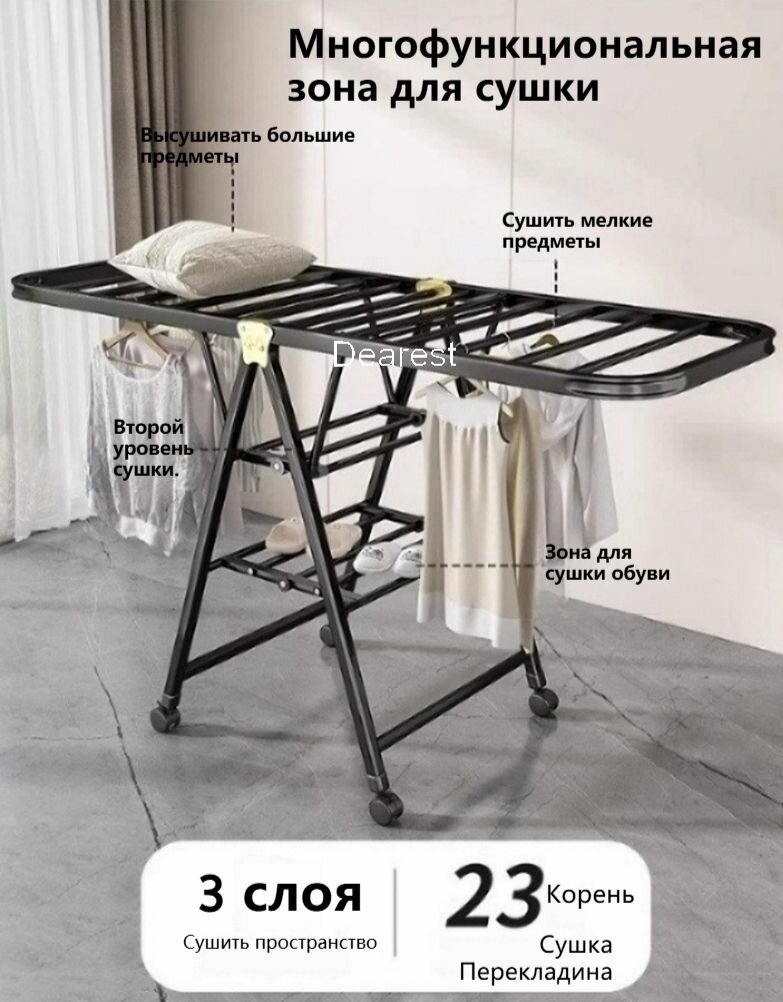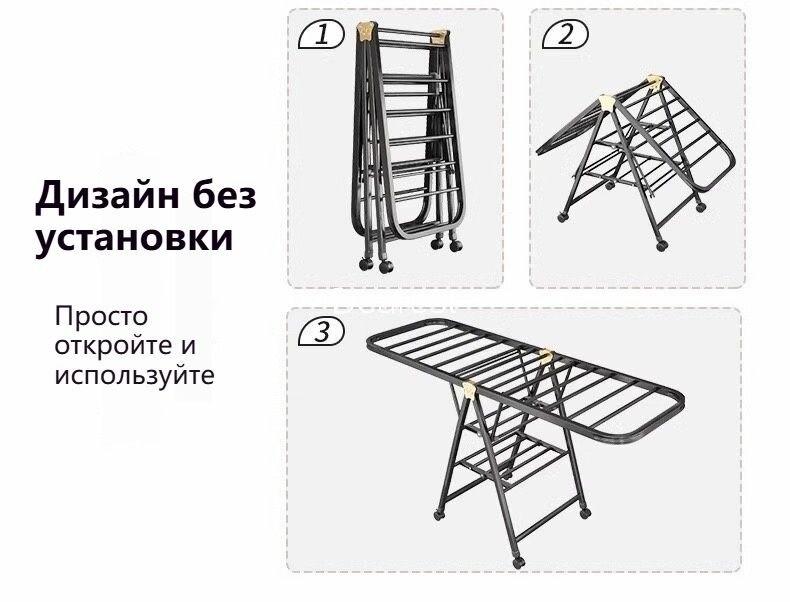 Сушилка для белья, напольная, складная, углеродная сталь, Чёрный, карданный колесо,160x95 см