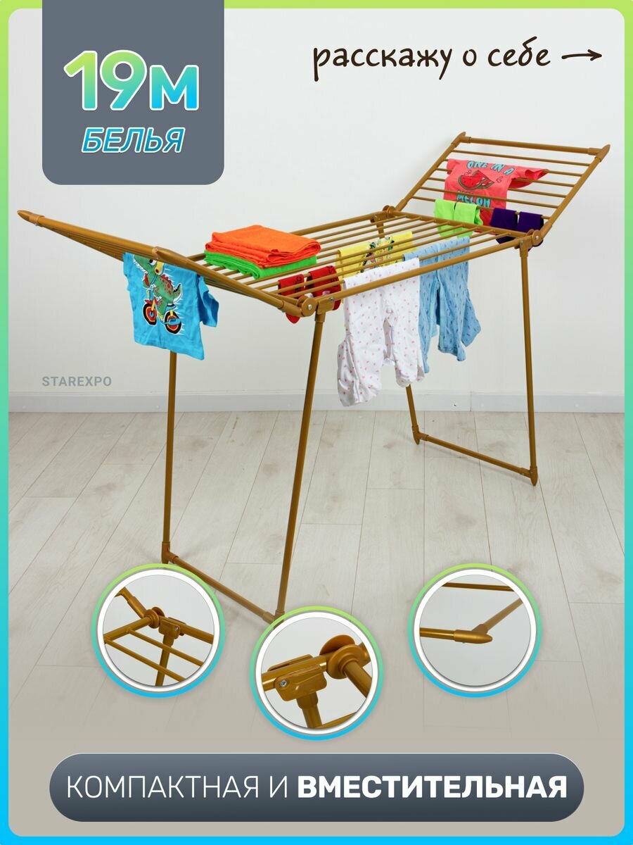 Сушилка для белья напольная Joy Home "Grand Gold", 19м, золотая интересное: