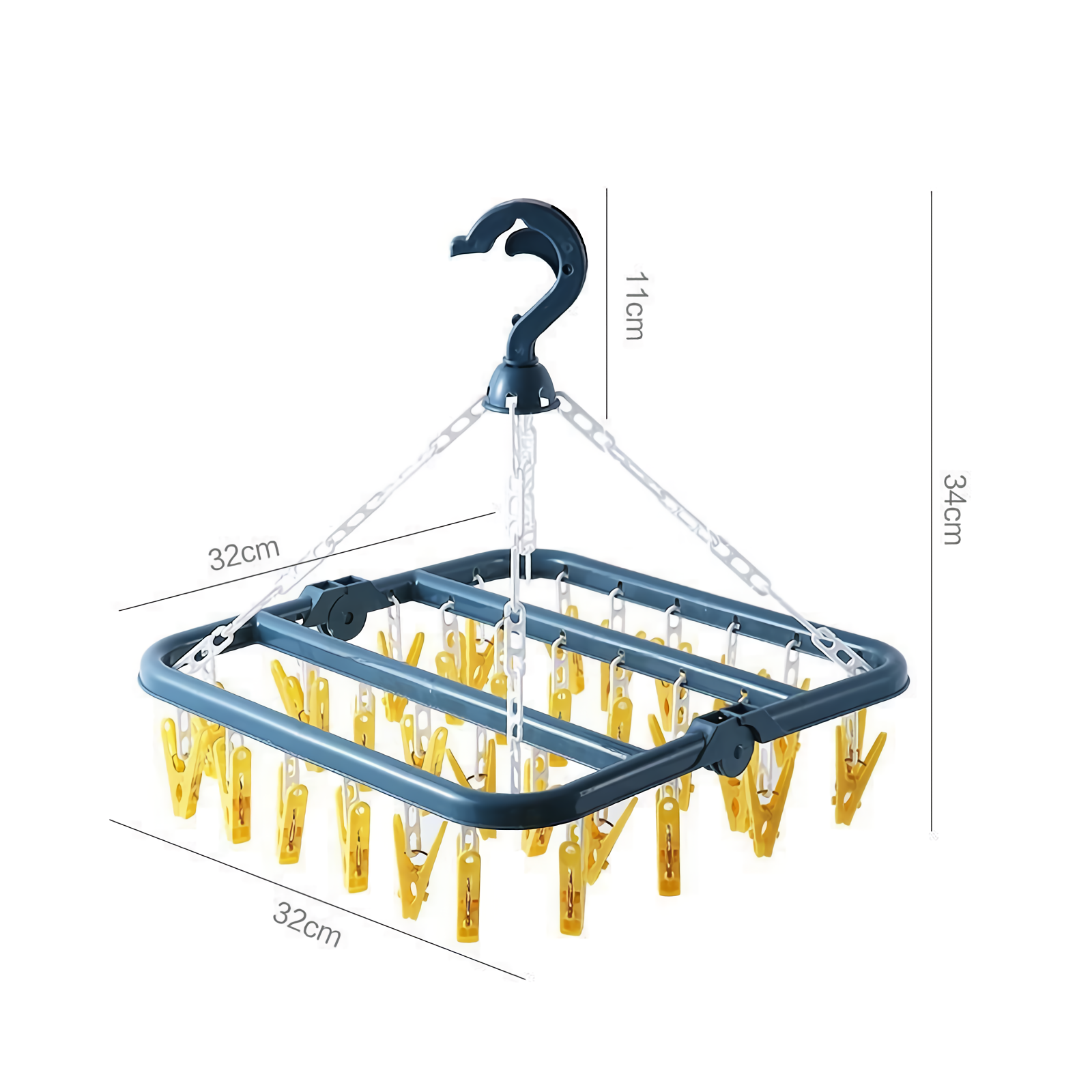 Подвесная сушилка / Вешалка для сушки белья с 32 прищепками (синий)