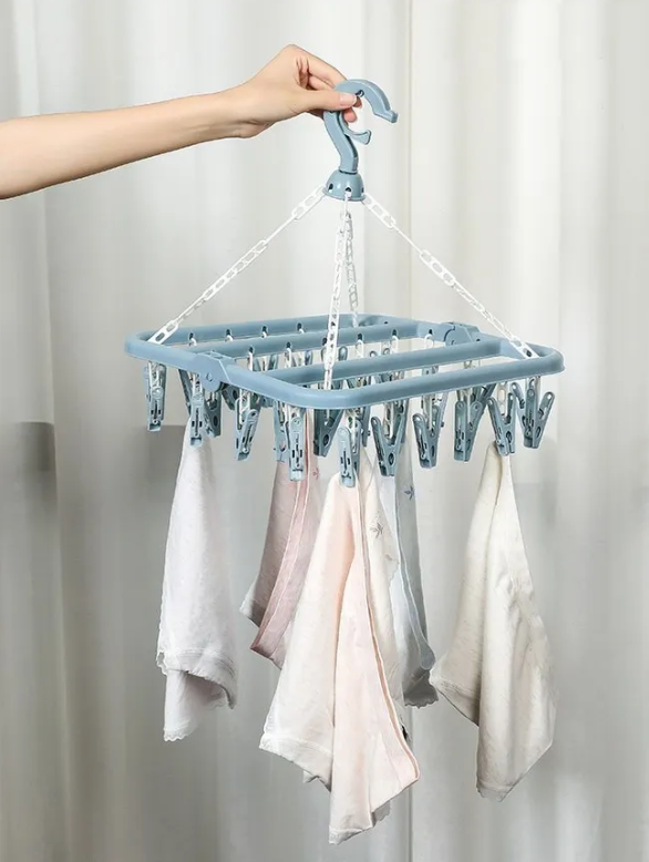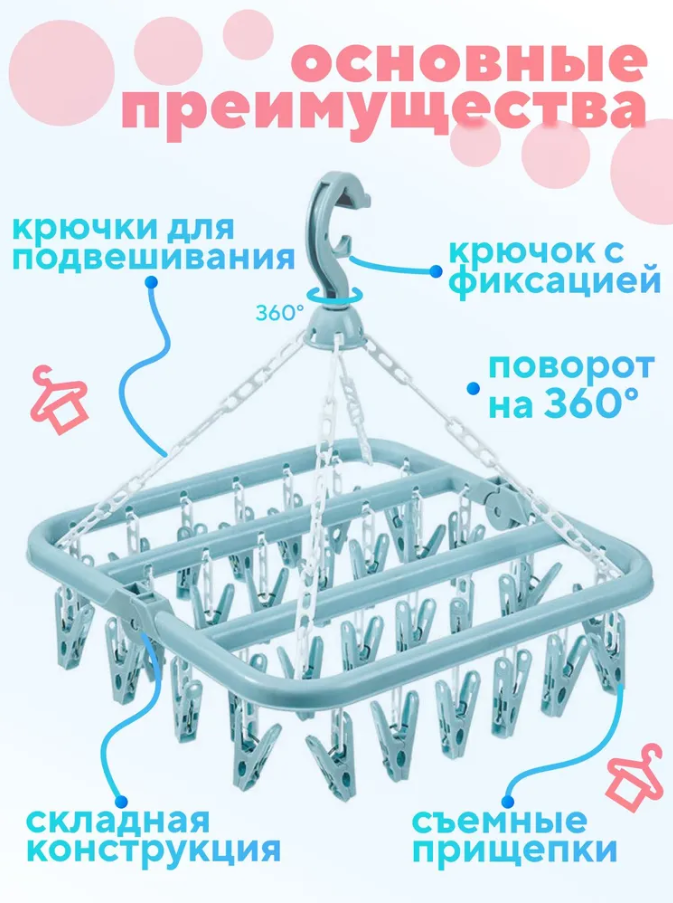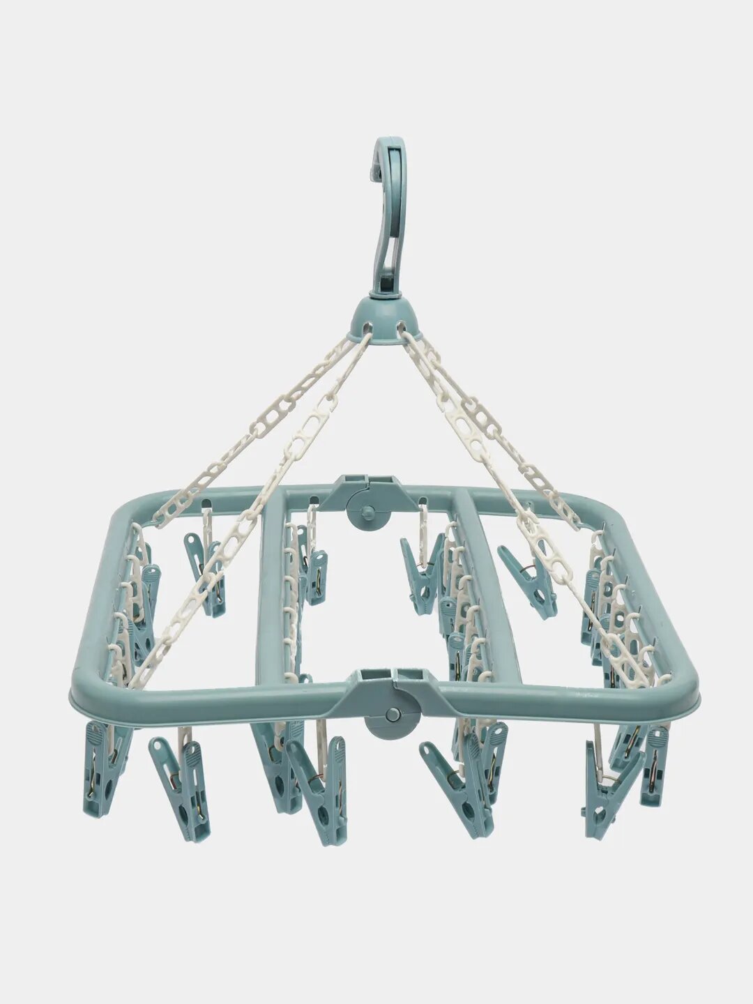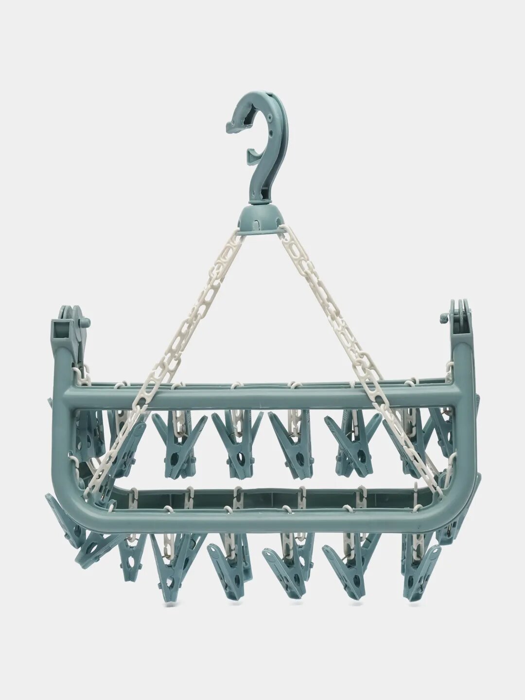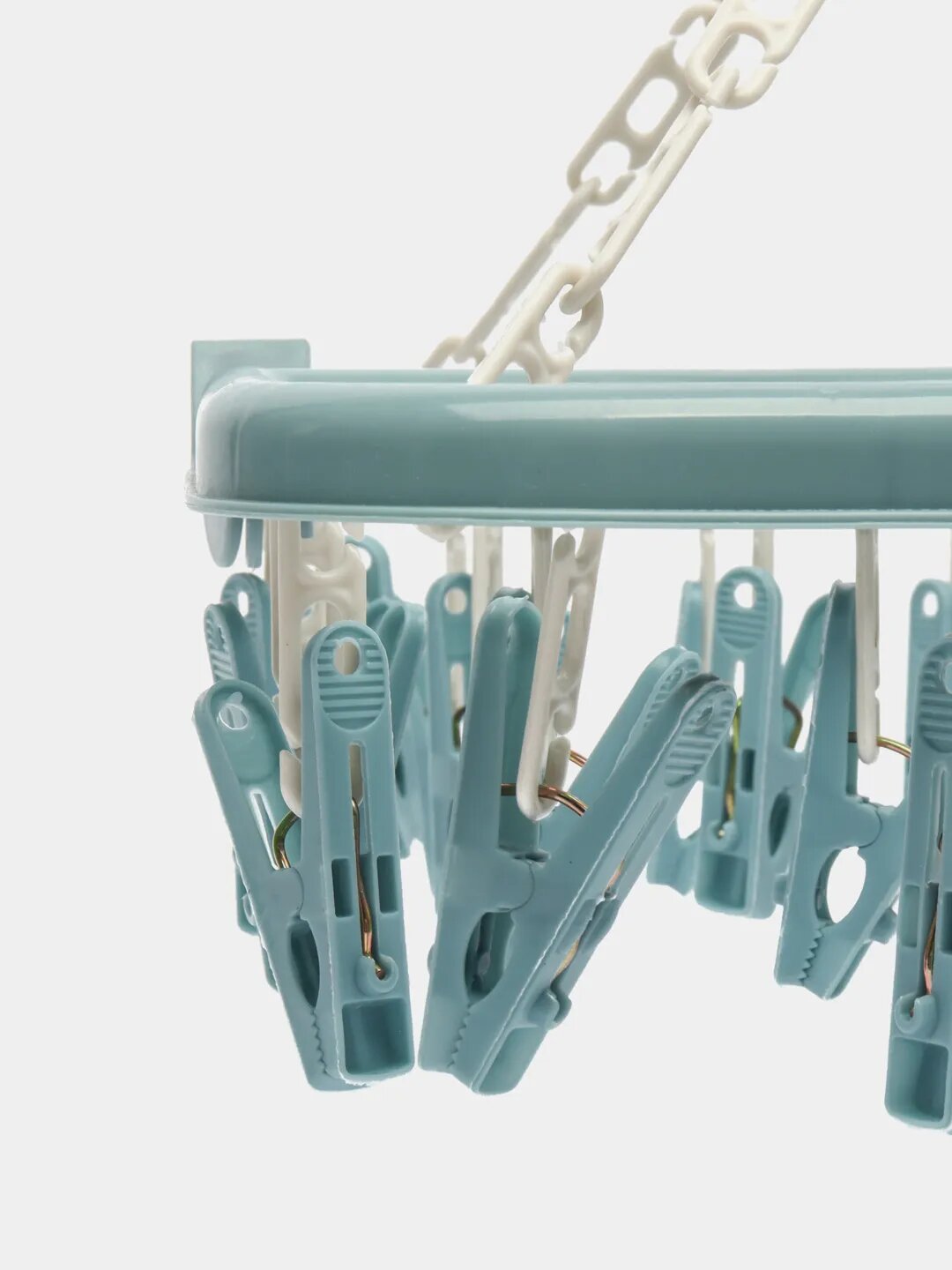 Подвесная сушилка / Вешалка для сушки белья с 32 прищепками (синий) интересное: