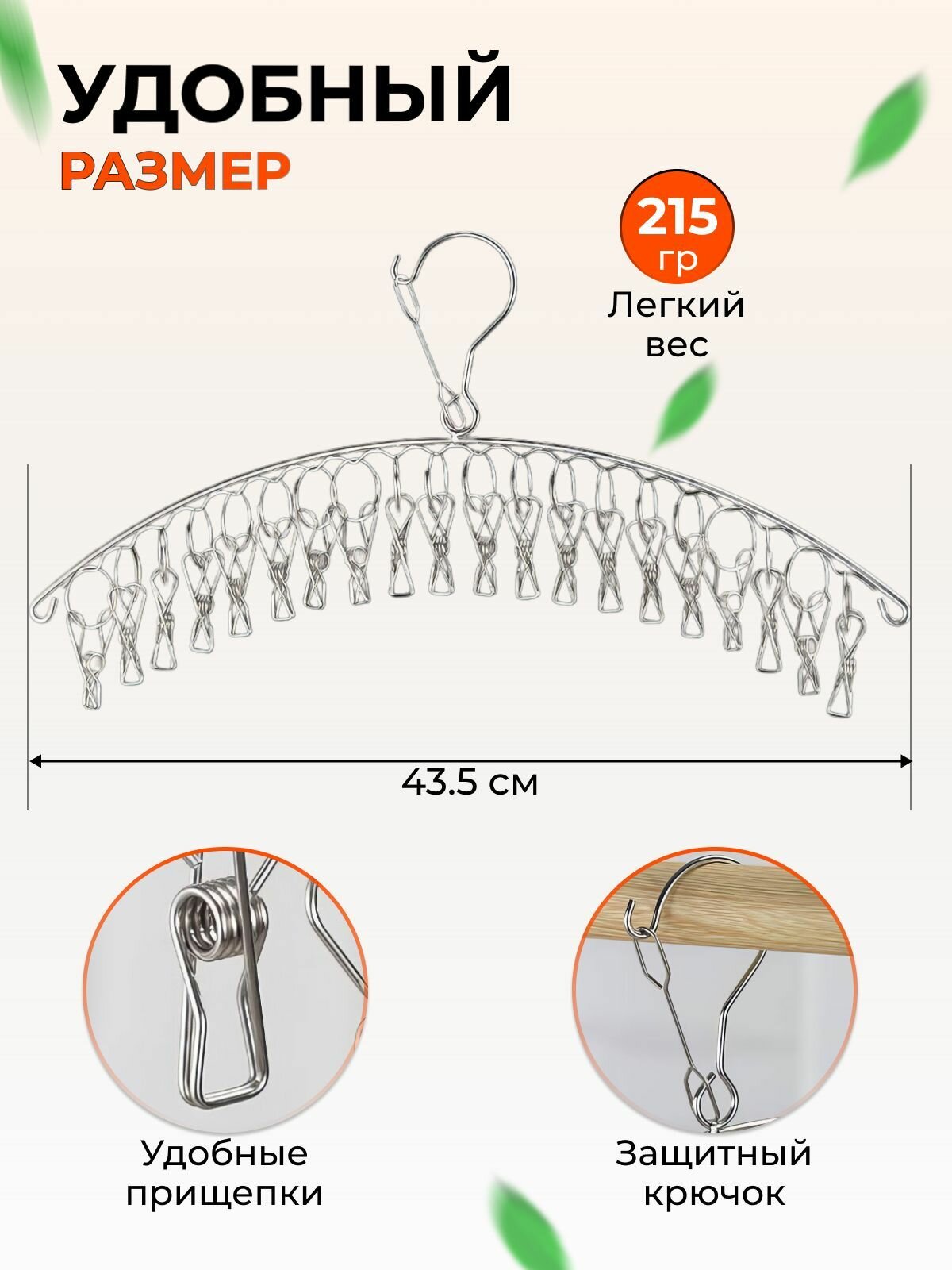 Вешалка-сушилка подвесная, органайзер с 20 прищепками для нижнего белья, носков, перчаток, шарфов интересное: