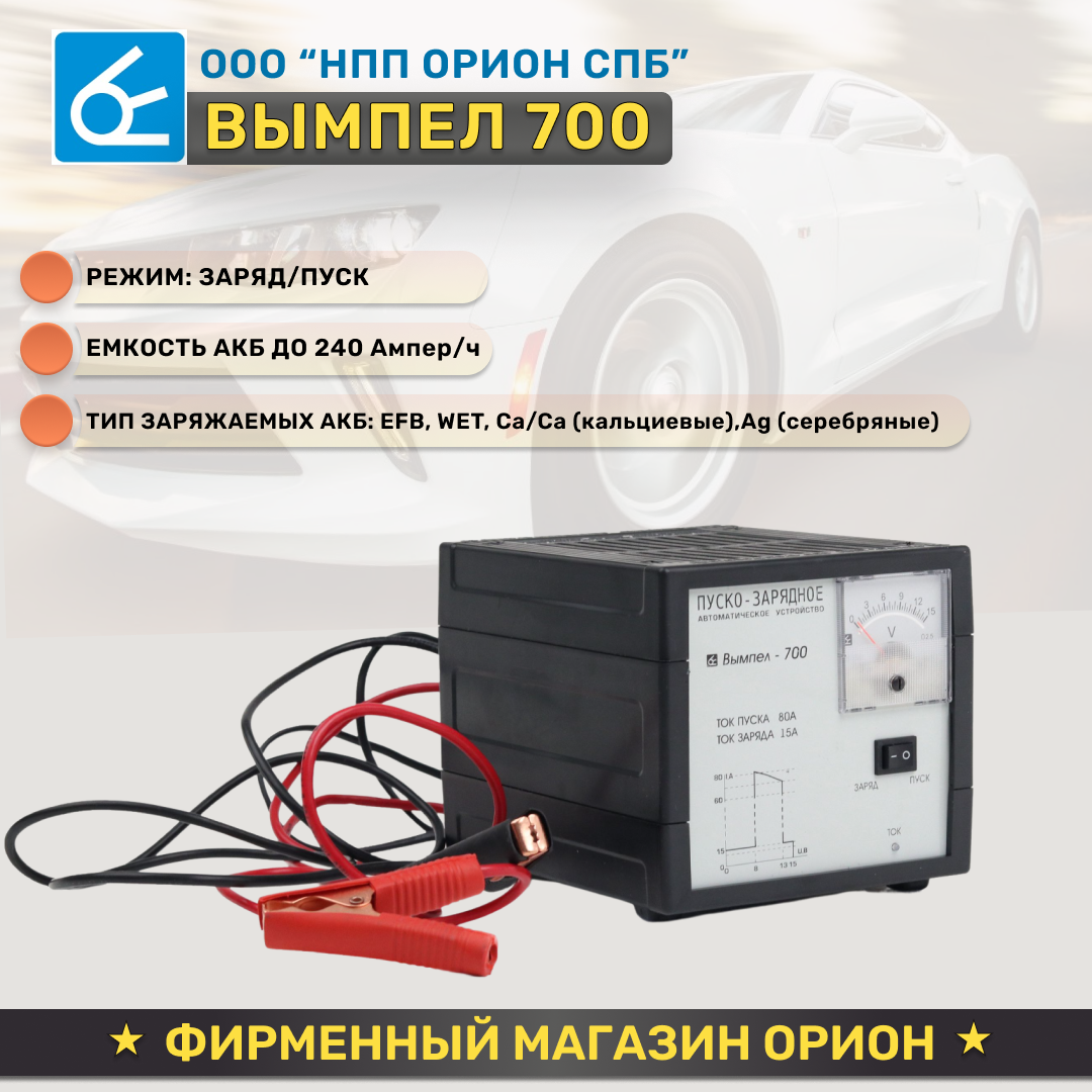 НПП «Орион» Пуско-зарядное устройство "Вымпел-700", заряд 15 А, пуск 80 А, 12 В
