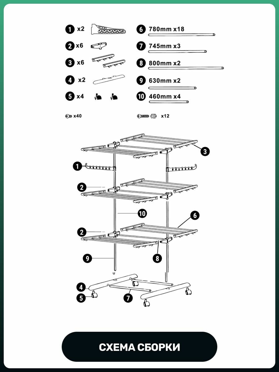 Сушилка для белья напольная складная металлическая для одежды Kappa 10 м