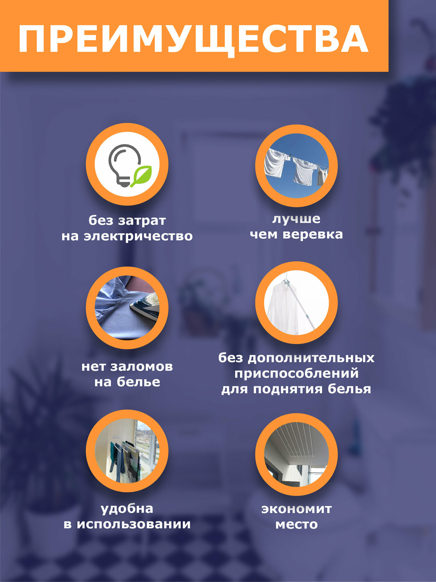 Купить Сушилка д/белья потолочная белая 2,0 м. EURO PREMIUM алюминиевая 5 прутьев