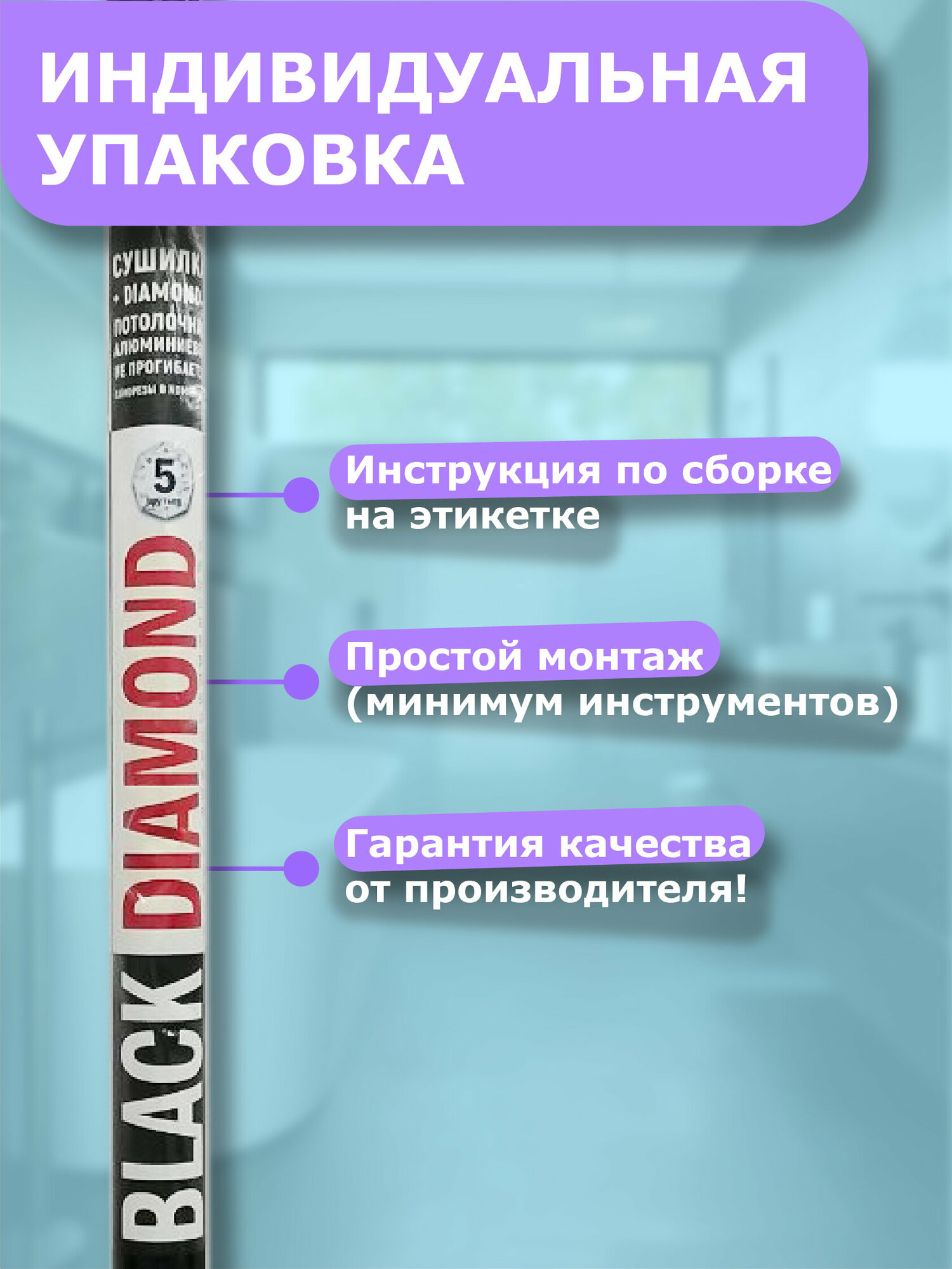 Купить Сушилка д/белья потолочная "BLACK DIAMOND" 2,0 м. EURO PREMIUM алюминиевая 5 прутьев