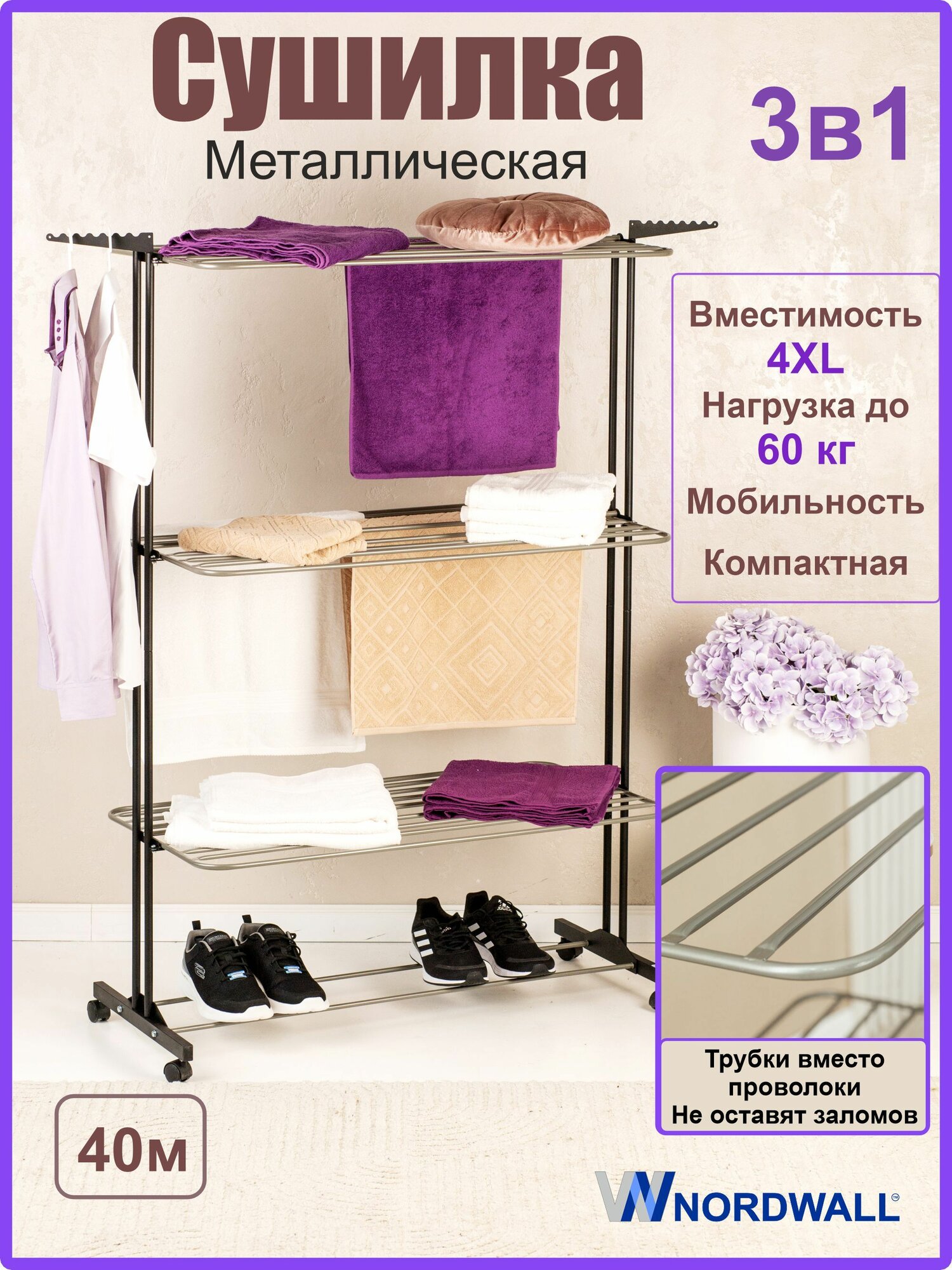Сушилка для белья напольная вертикальная металлическая NordWall Epsilon 40 интересное: