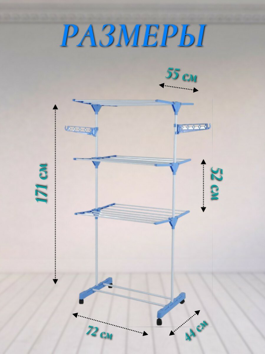 Вертикальная напольная сушилка для белья складная на колесиках