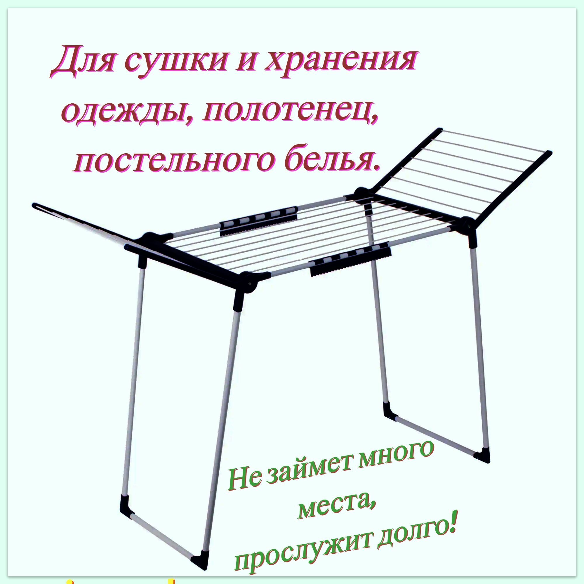 Напольная складная сушилка для белья из стали (180 x 90 x 50 см) с антикоррозийным покрытием, с откидывающимися боковыми створками.