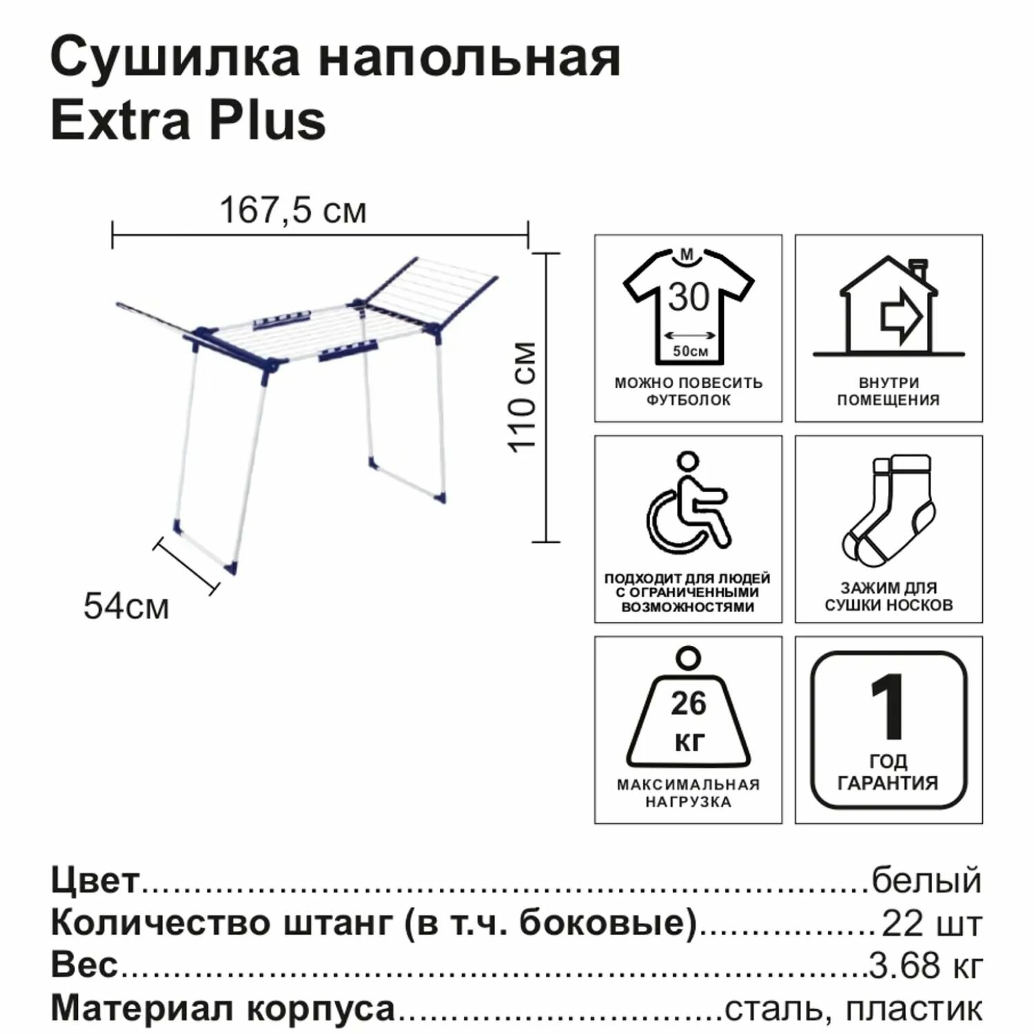 СохранитьСушилка "Extra Plus" напольная, сталь, пластик. Подходит для размещения на лоджии, балконе, в ванной комнате или коридоре, имеет складную конструкцию, что позволяет сэкономить место интересное: