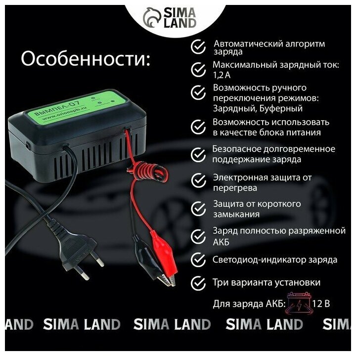 Зарядное устройство АКБ "Вымпел-07" 1.2 А 12 В для всех типов АКБ до 20 Ач