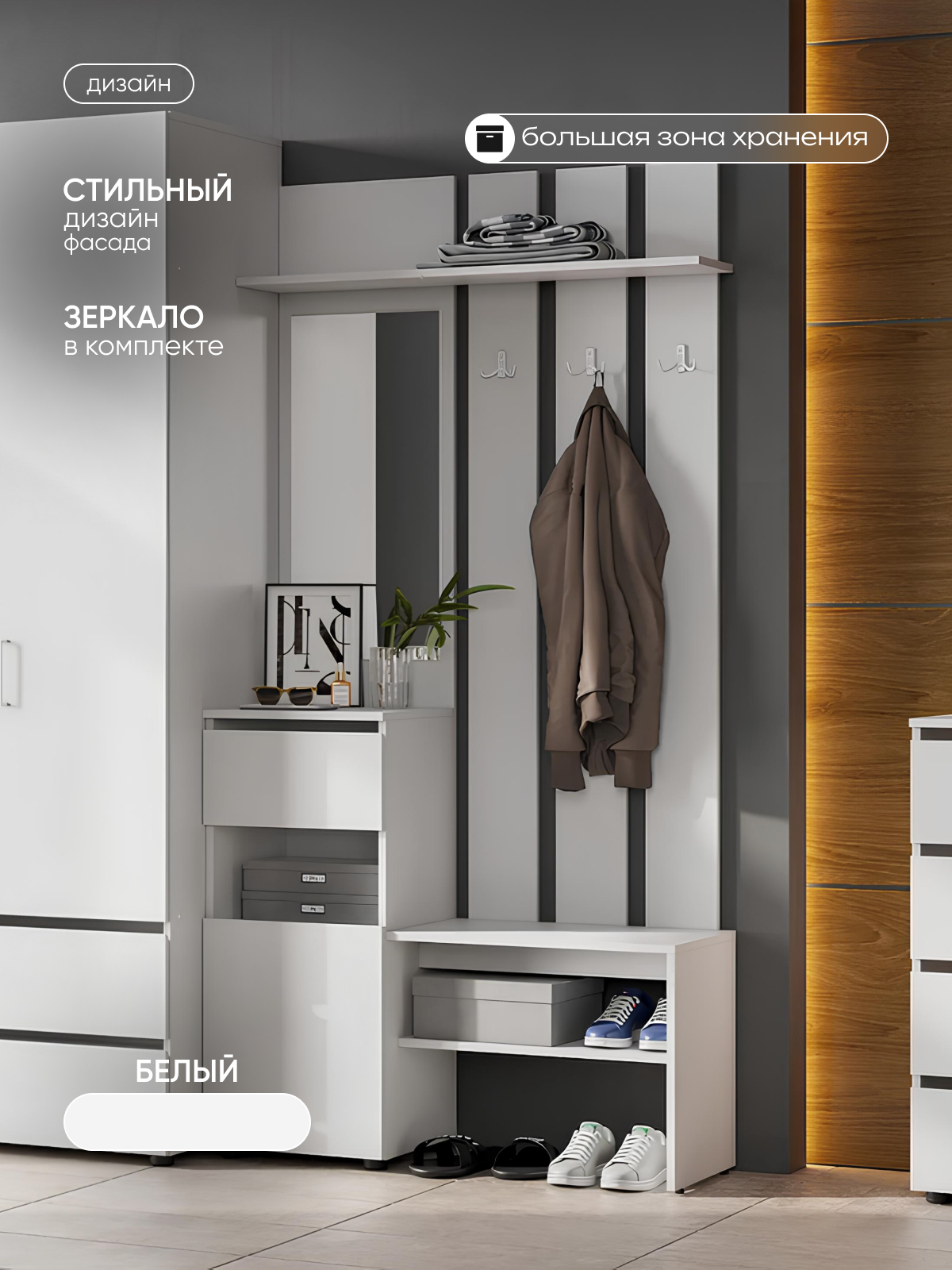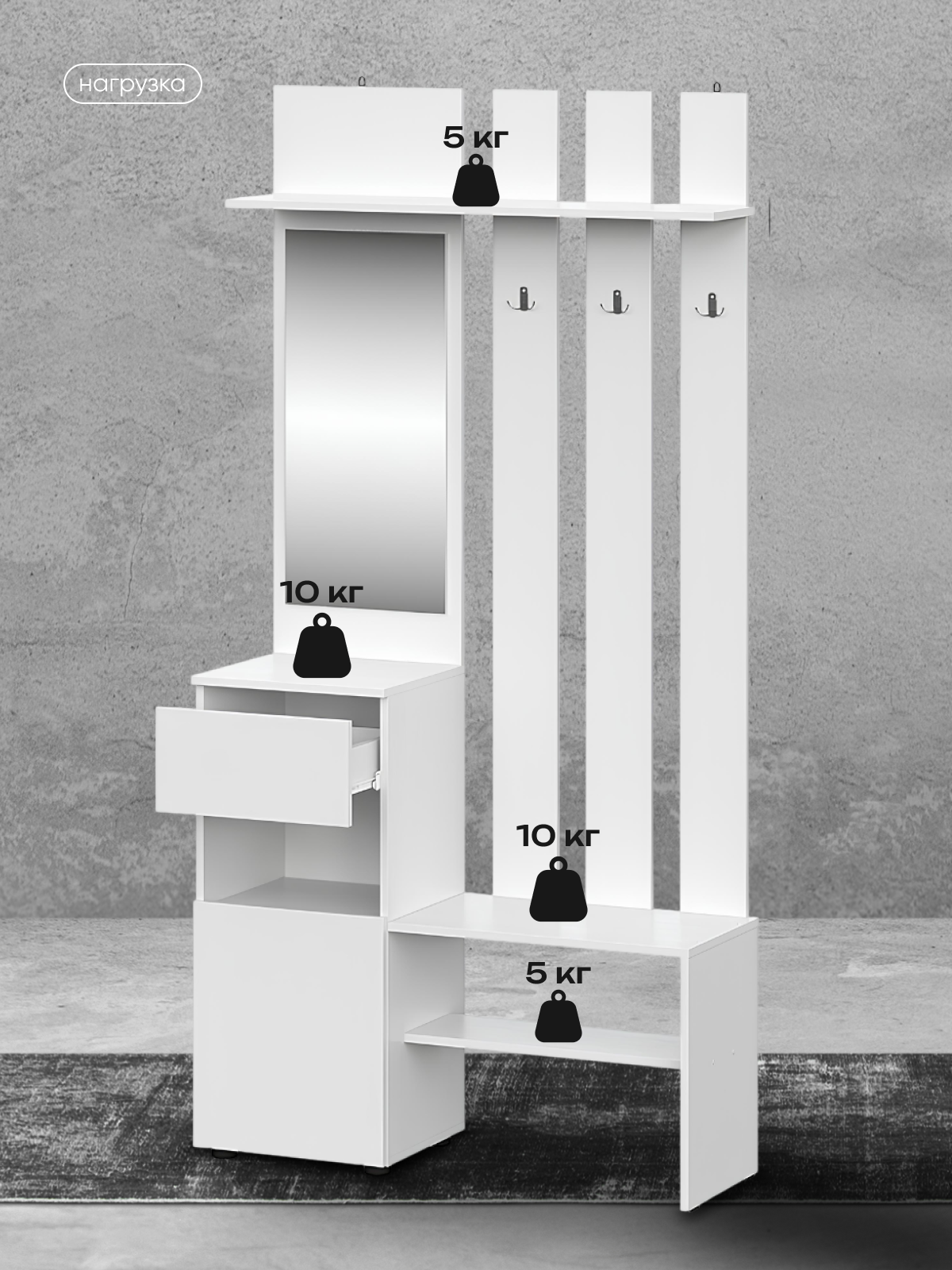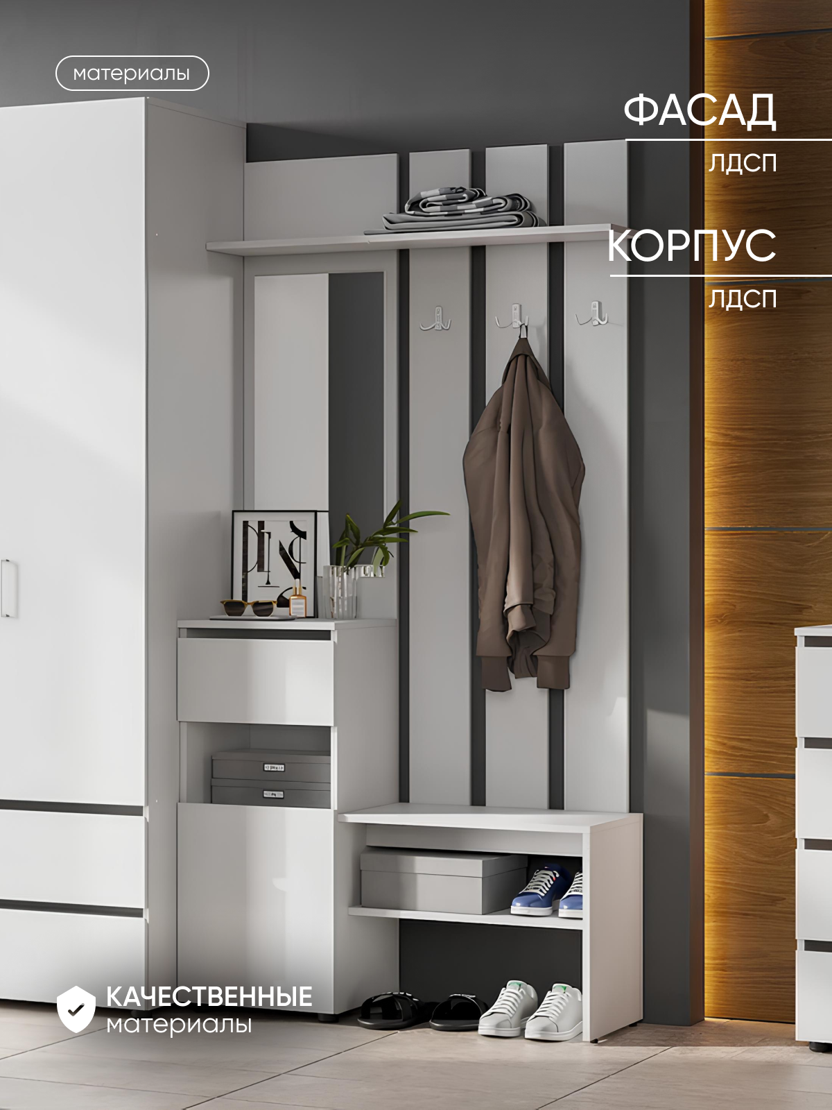 Вешалка ARNIKA Токио, модульная, с зеркалом, ЛДСП, белая, 100х36,8х200см интересное: