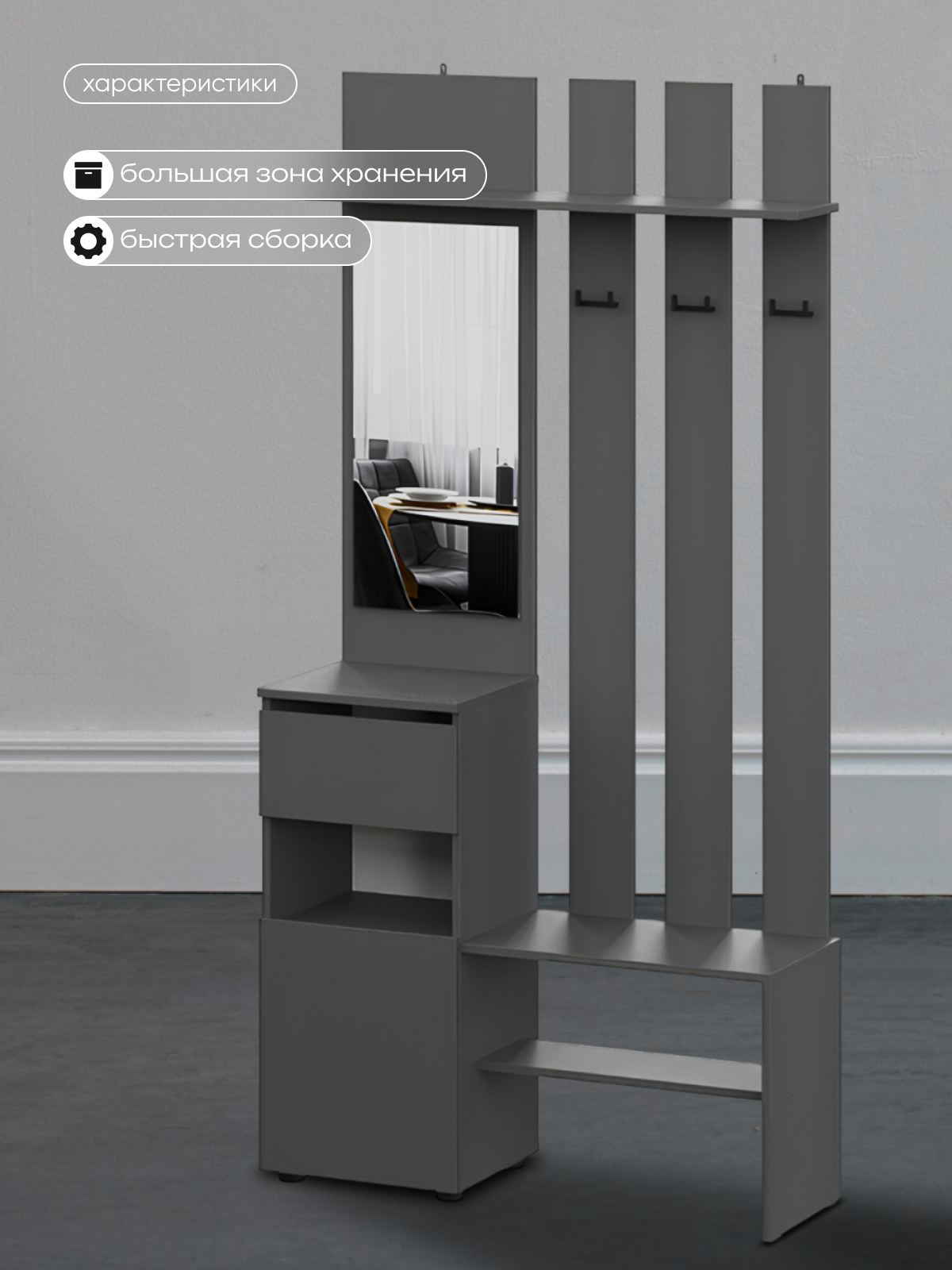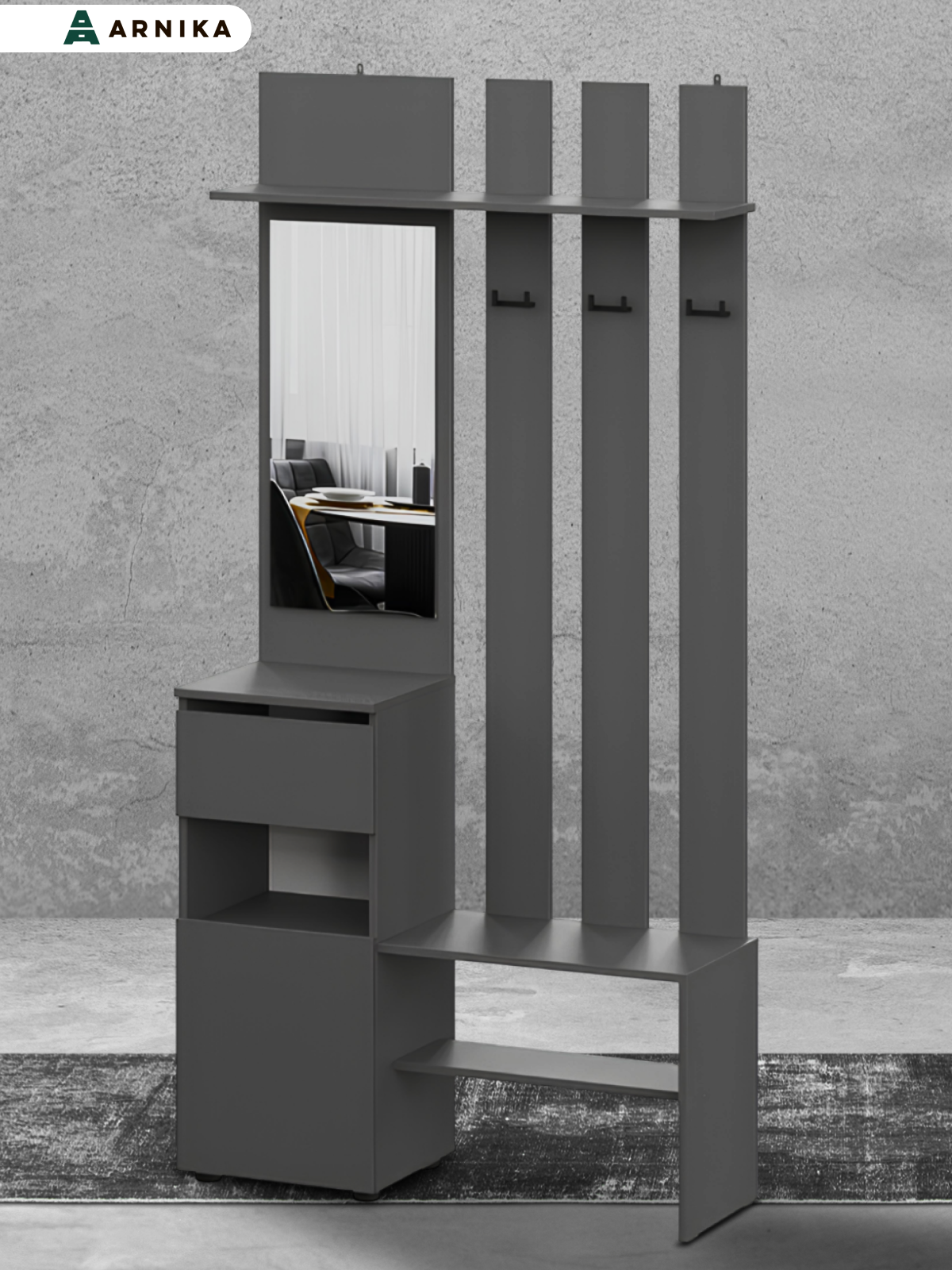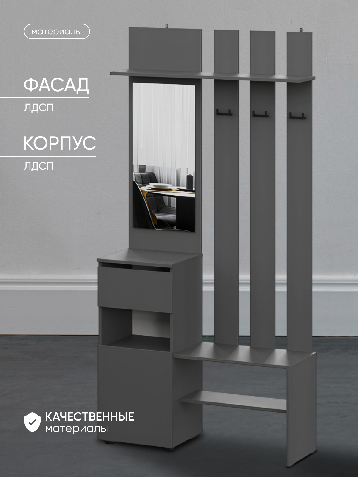 Вешалка ARNIKA "Денвер", с зеркалом, ЛДСП, серая, 100x35x200см интересное: