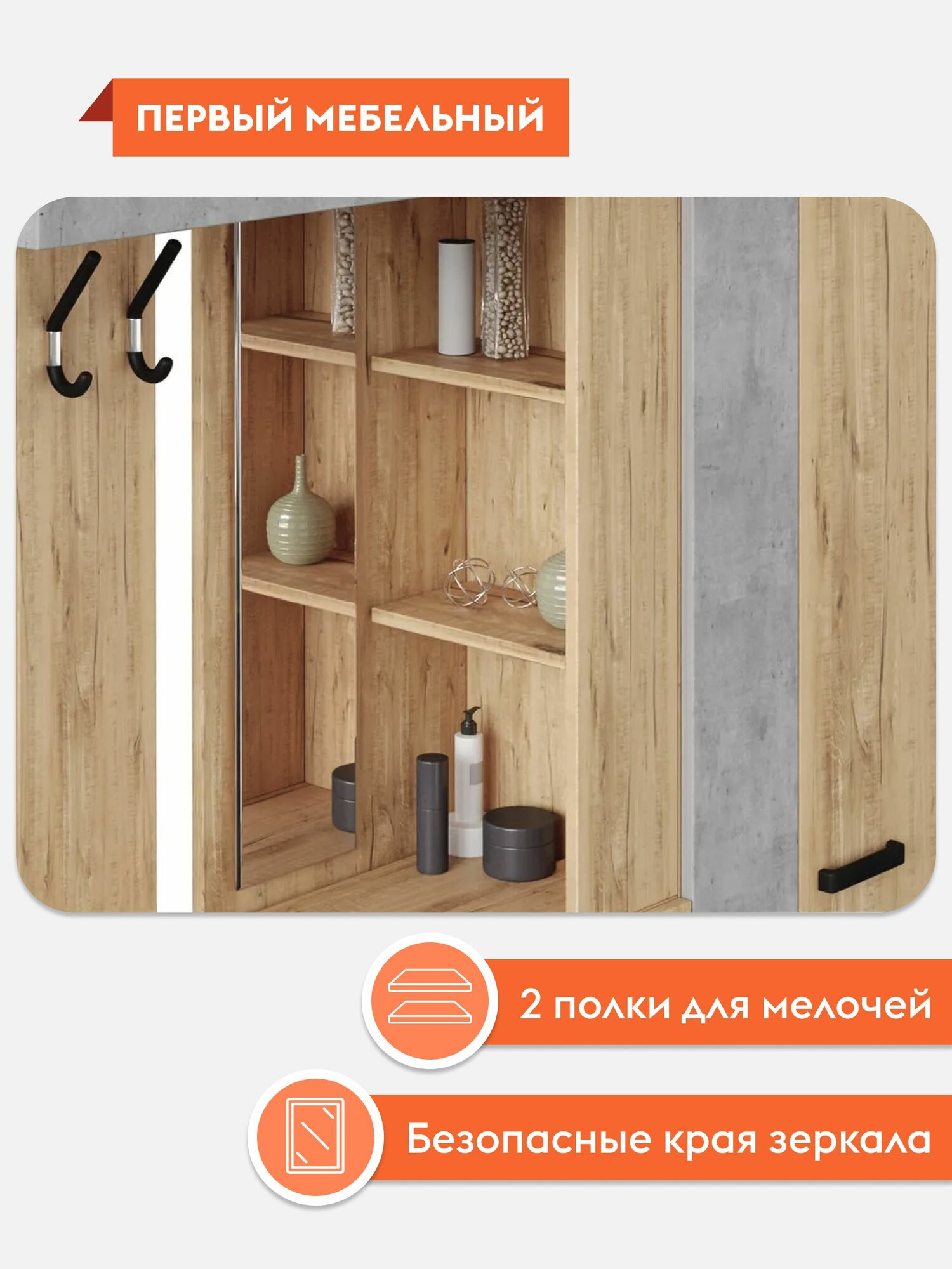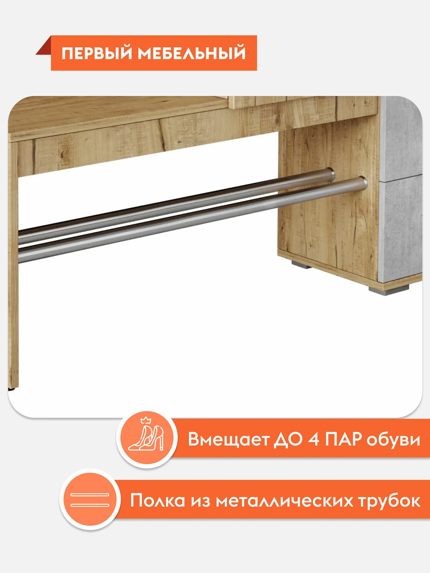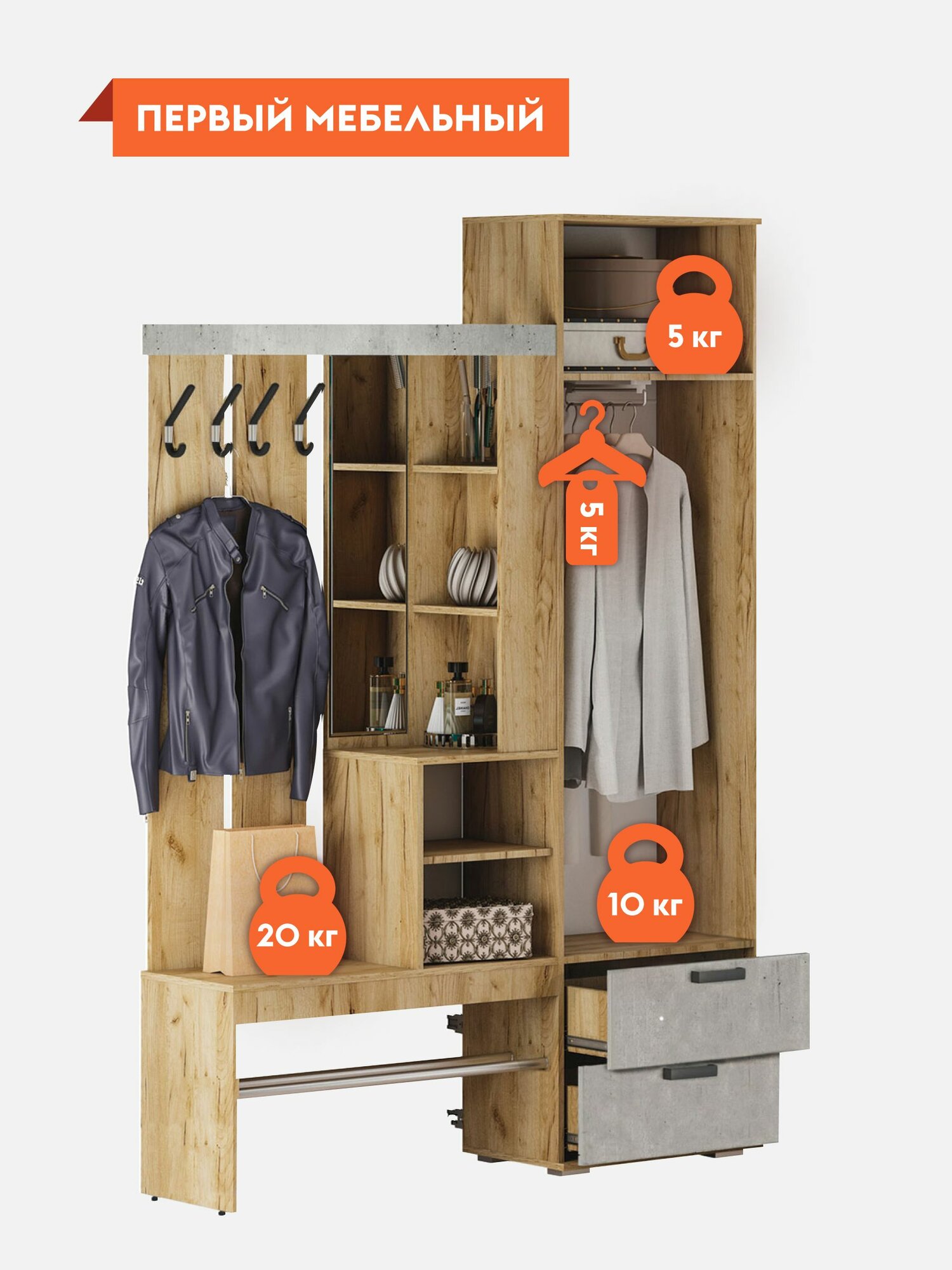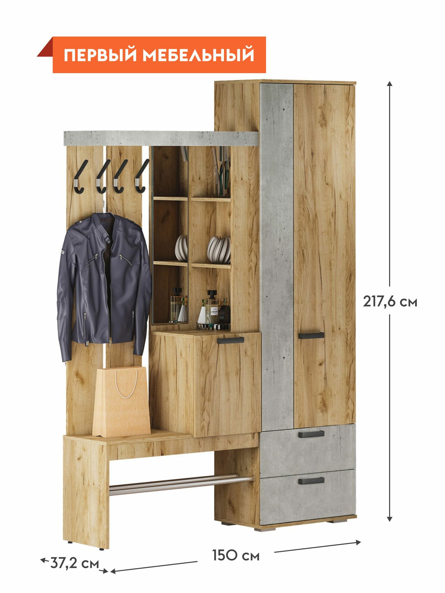 Прихожая комплект Трамп с вешалкой, со шкафом, с сиденьем, с обувницей, с зеркалом, 150х37.2х217.6 см, Дуб Крафт / Бетон интересное: