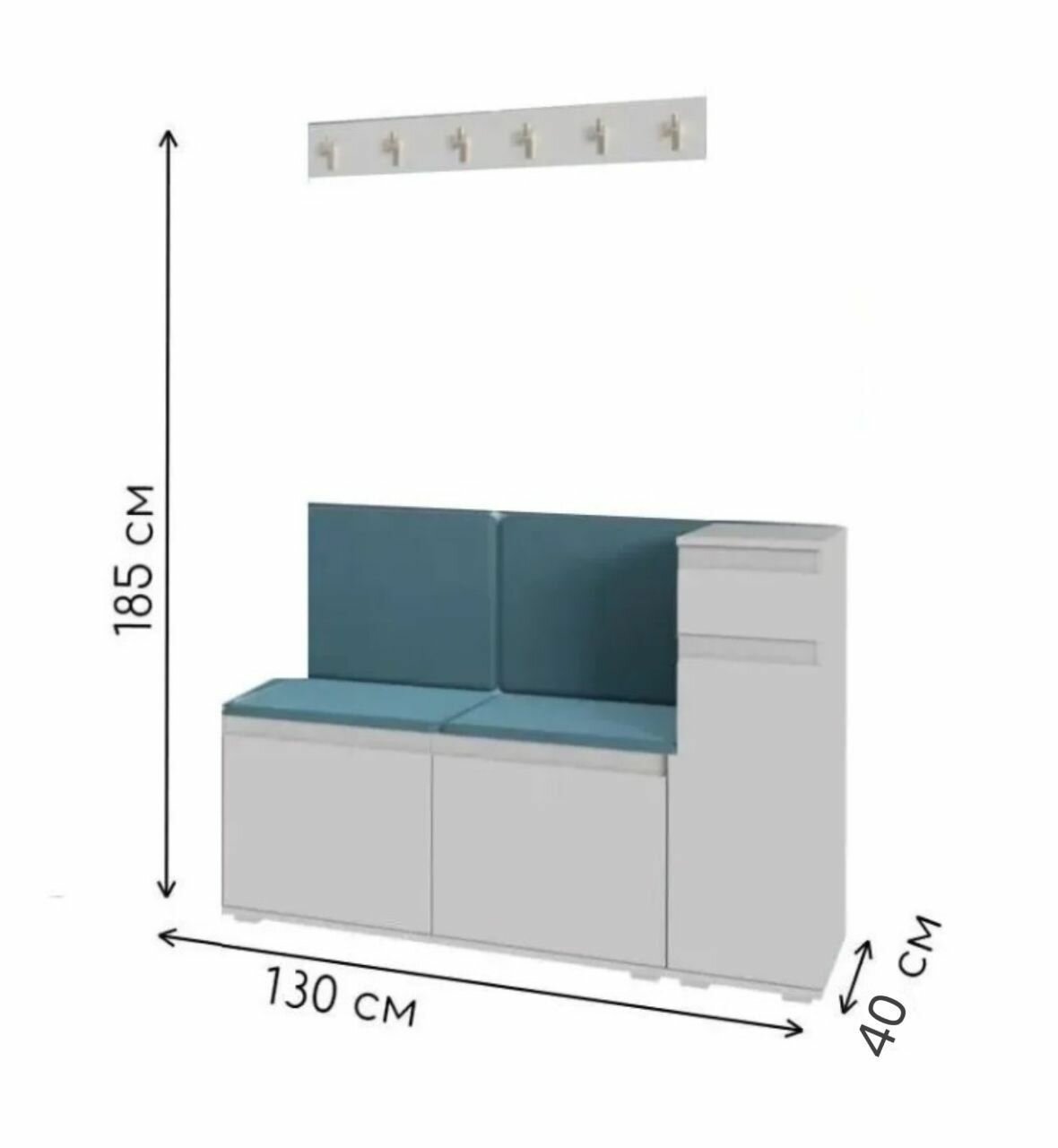 Прихожая, прихожая комплект Stark 3, Белый / Велюр Бирюзовый 130х185х40 см (ШхВхГ)