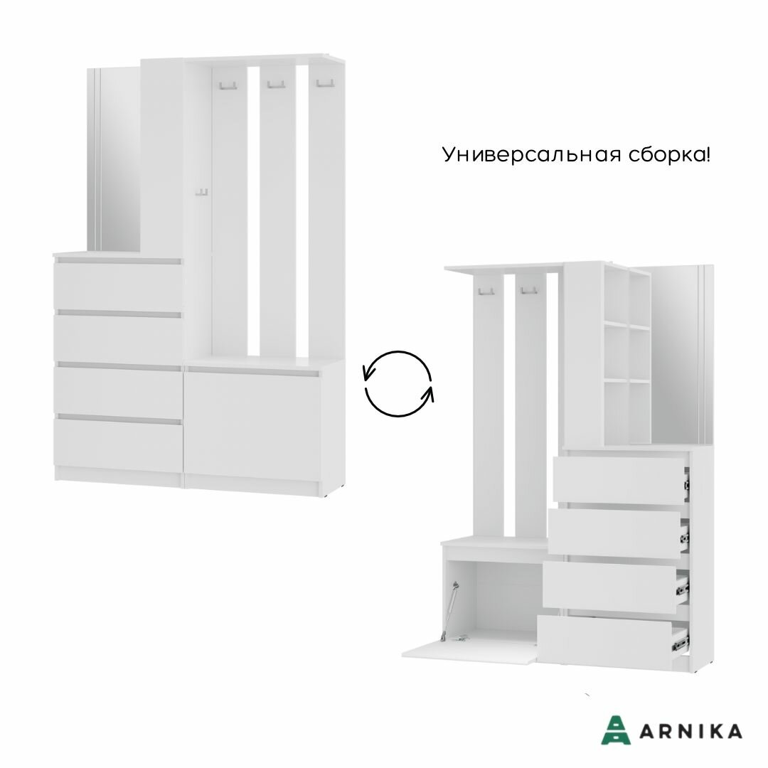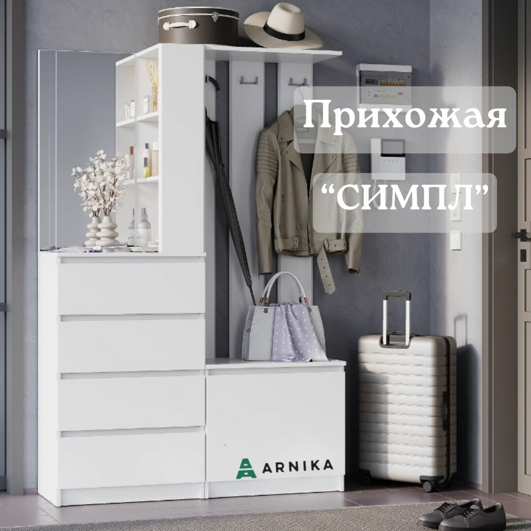 Прихожая ARNIKA Симпл, модульная, зеркальная, с обувницей, белая, 180x120 см интересное: