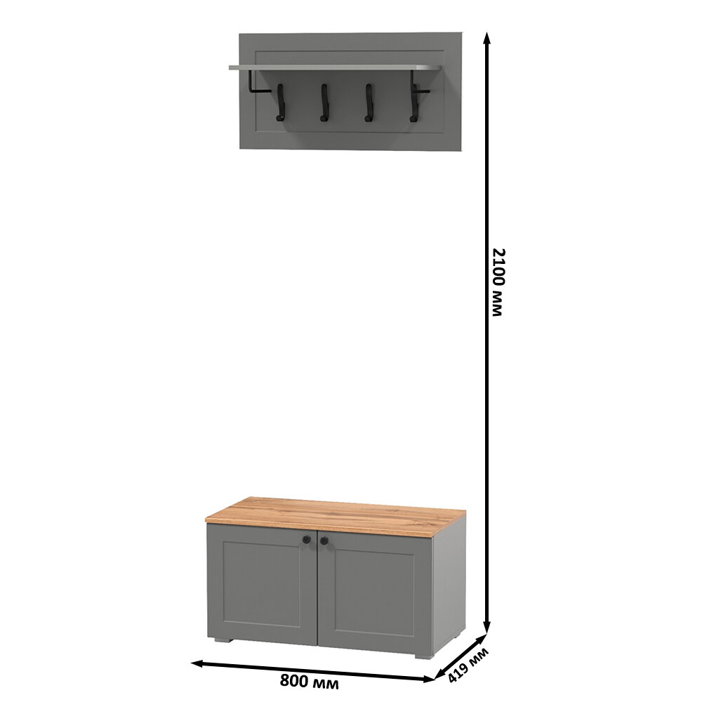 Прихожая Денвер, 800х360х1925, Графит/Дуб гранж