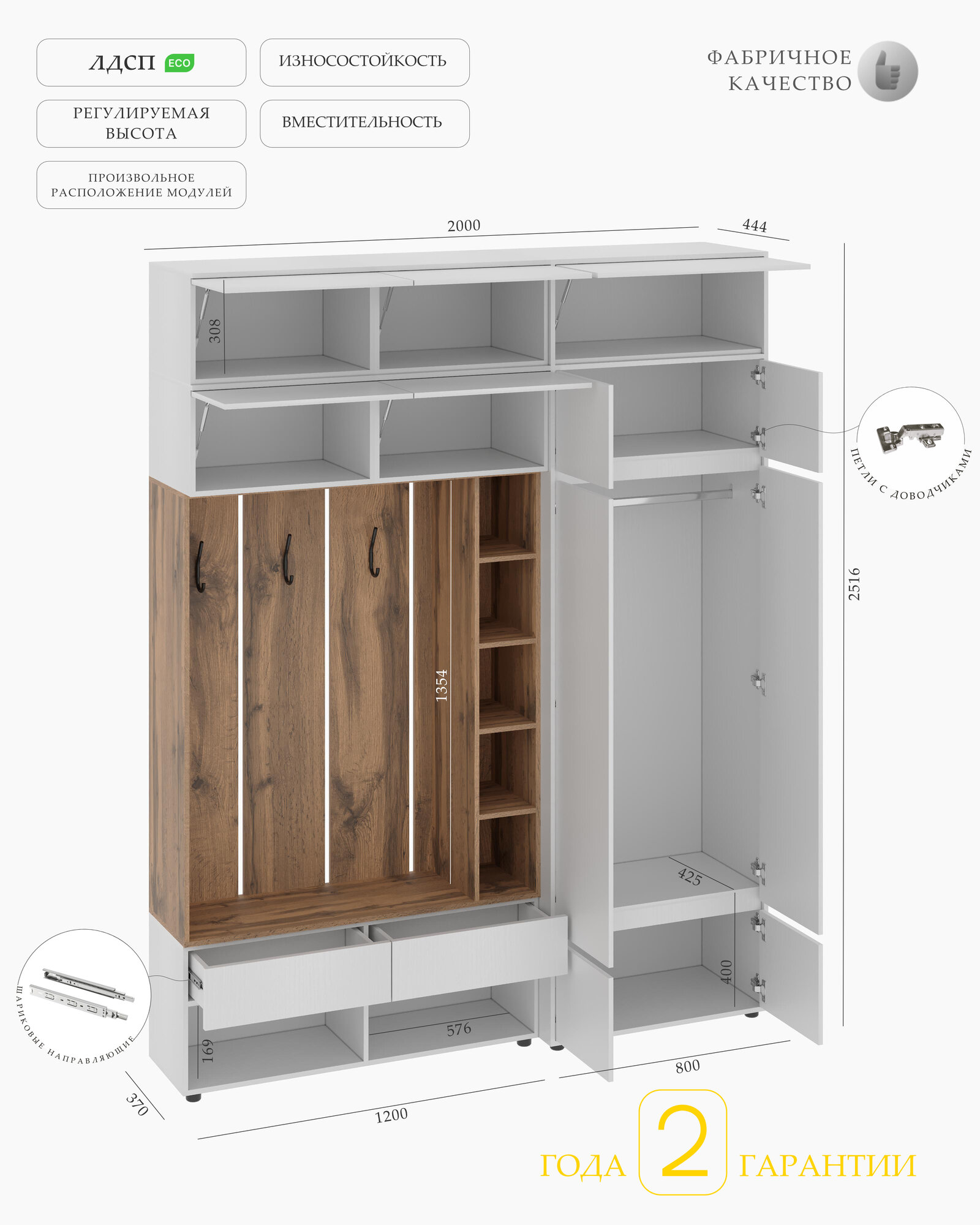 Комплект прихожей "Bosa" К4А с антресолью, 200х252х45см интересное: