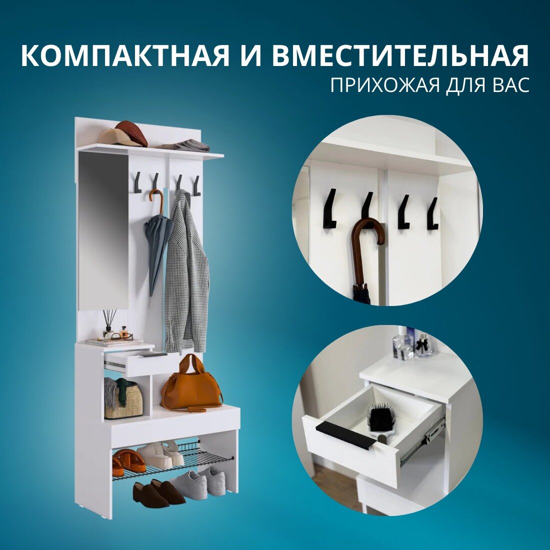 Прихожая Basko К4, комплект мебели в прихожую, Белое дерево, 120х235х34,9 см (ШхВхГ) интересное: