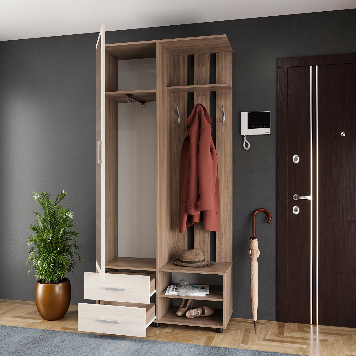 Прихожая Натали 2 с зеркалом цвет: венге/бодега светлая размер: 1000х410х2150 мм