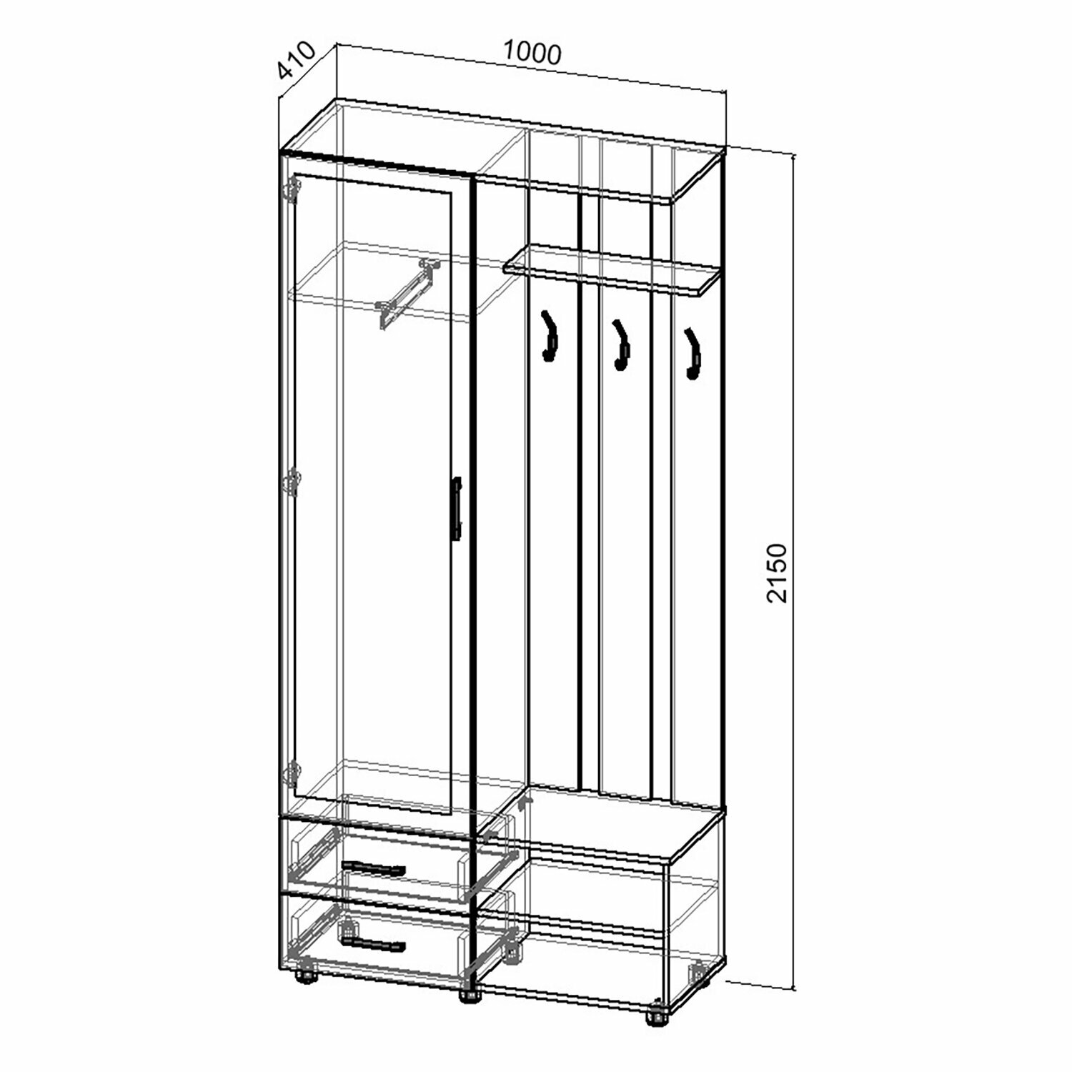 СохранитьПрихожая Натали 2 с зеркалом цвет: венге/бодега светлая размер: 1000х410х2150 мм интересное: