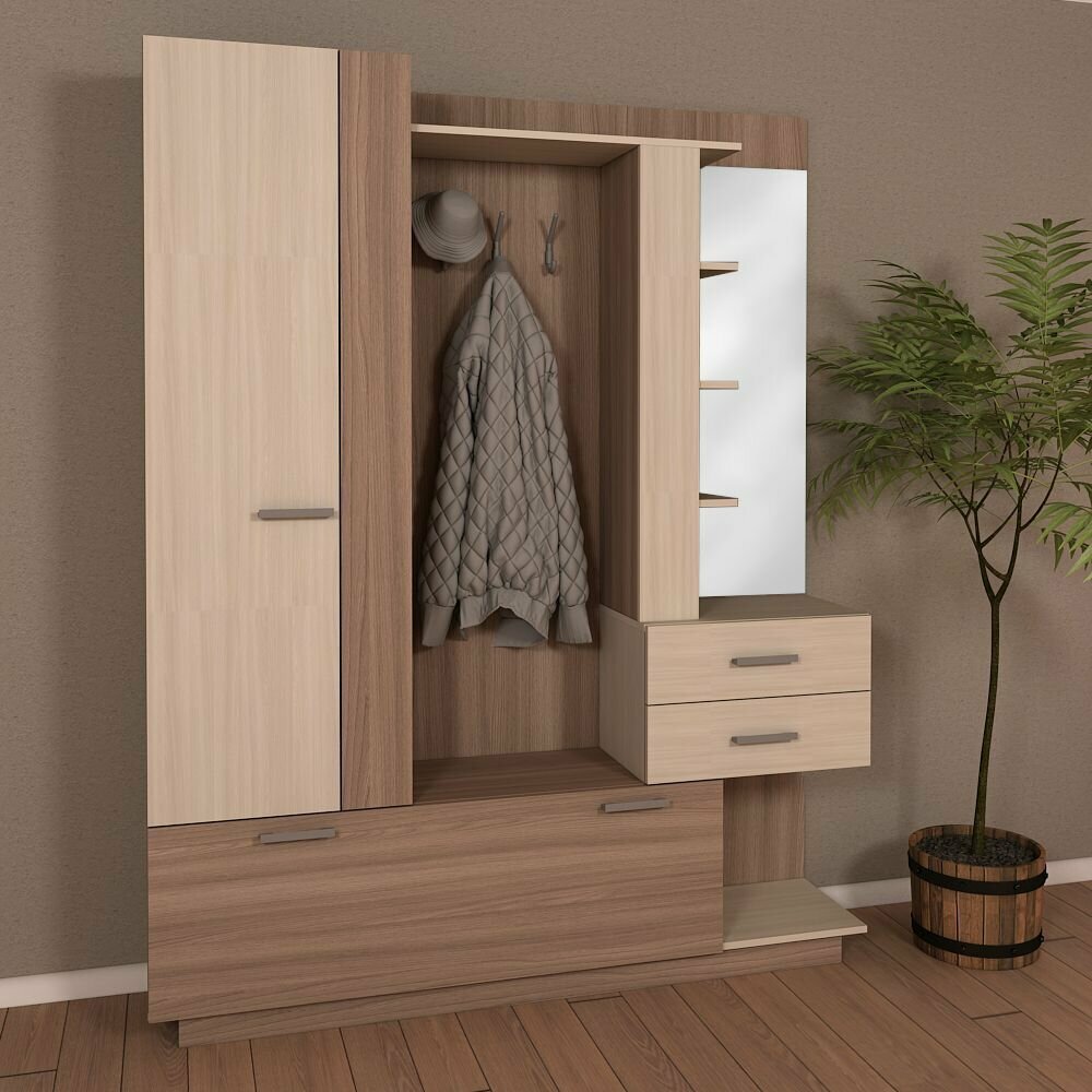Прихожая Натали 2 с зеркалом цвет: венге/бодега светлая размер: 1000х410х2150 мм