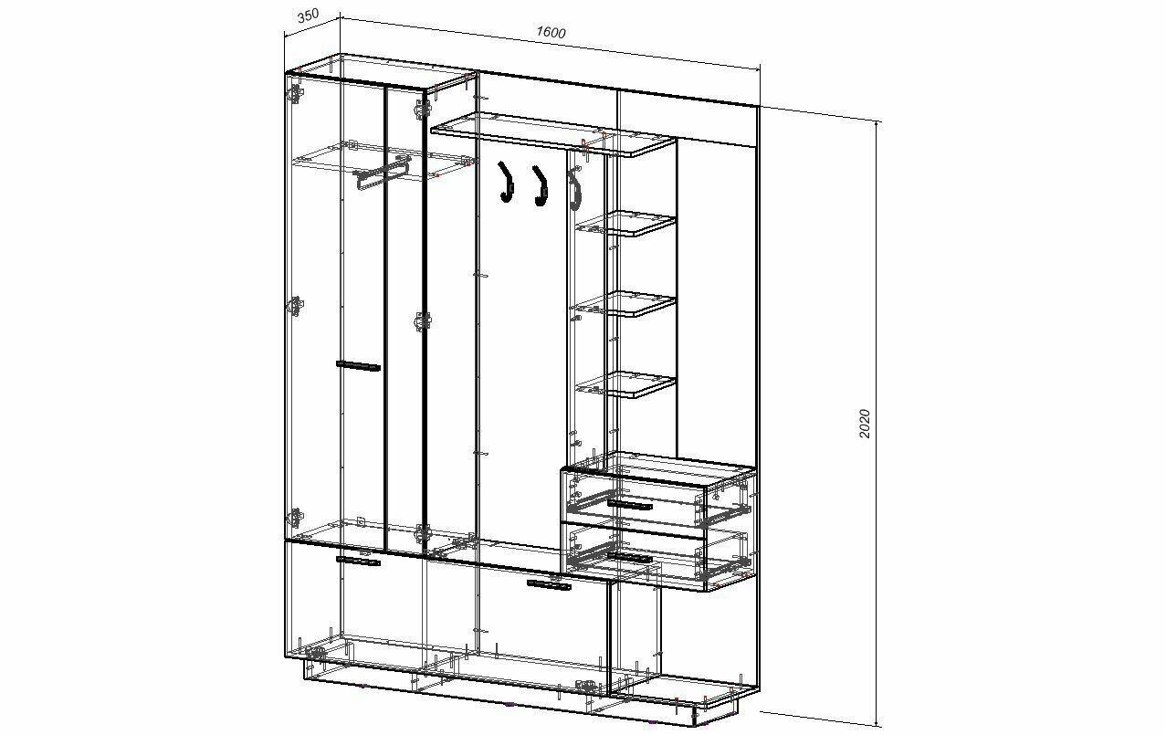 СохранитьПрихожая Мария цвет: Ясень шимо тёмный/Ясень шимо светлый размер: 1600х350х2020 мм интересное: