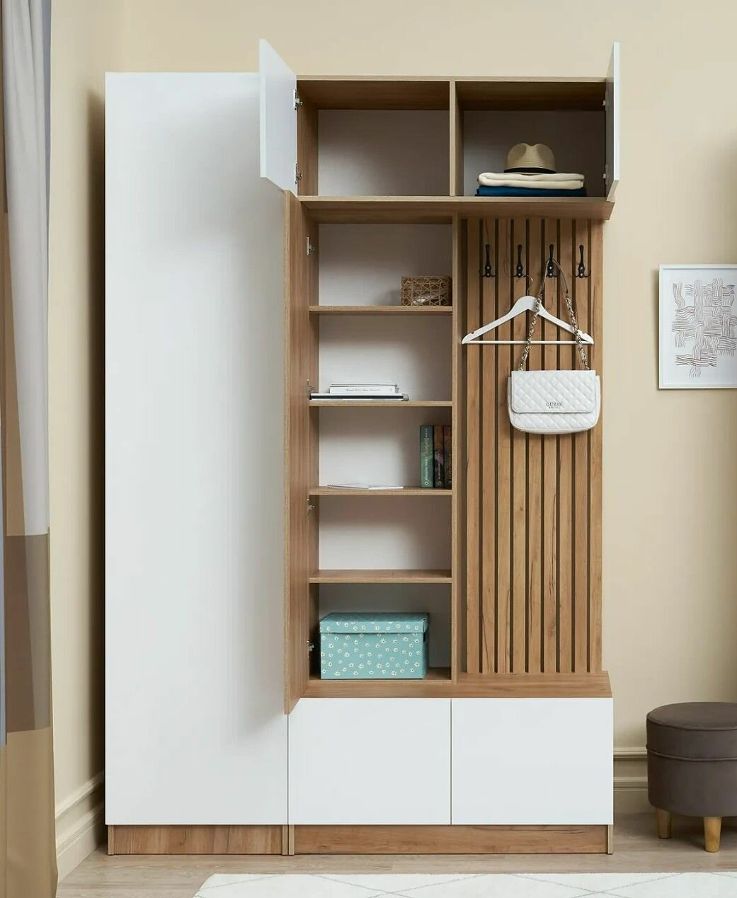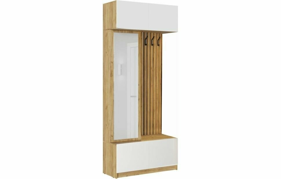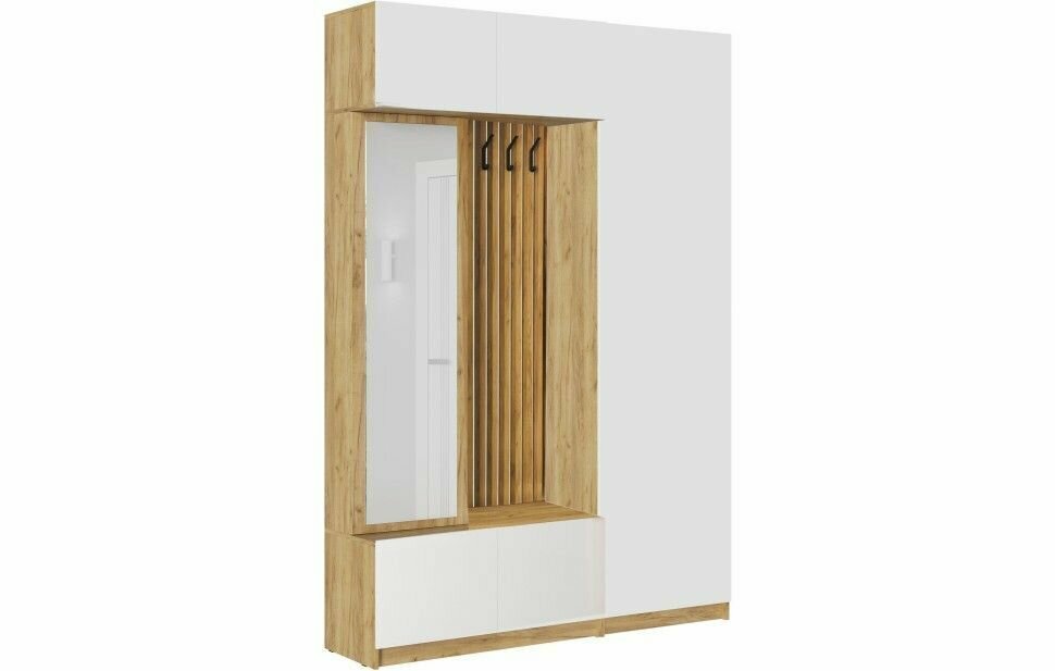 Комплект мебели для прихожей "Роджина" Композиция №1 Дуб Крафт Золотой/Белый глянец интересное: