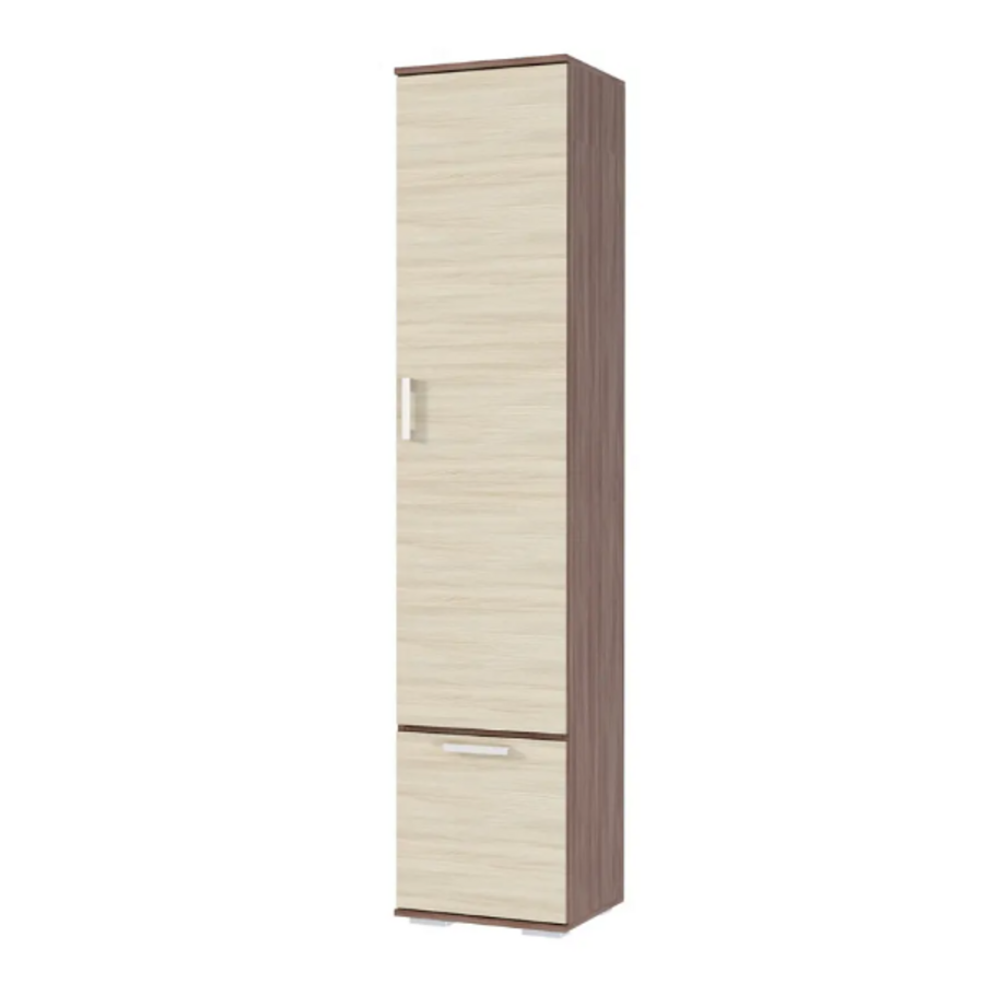 Прихожая комплект САША-6 (правая) от Фант-Мебель, с зеркалом, с обувницей, шкафом и ящиками, 156x203,6x43 см. Ясень темный/Ясень светлый