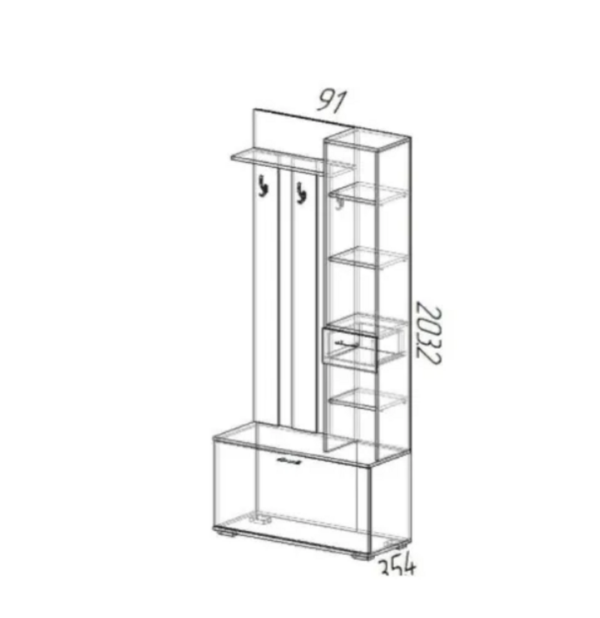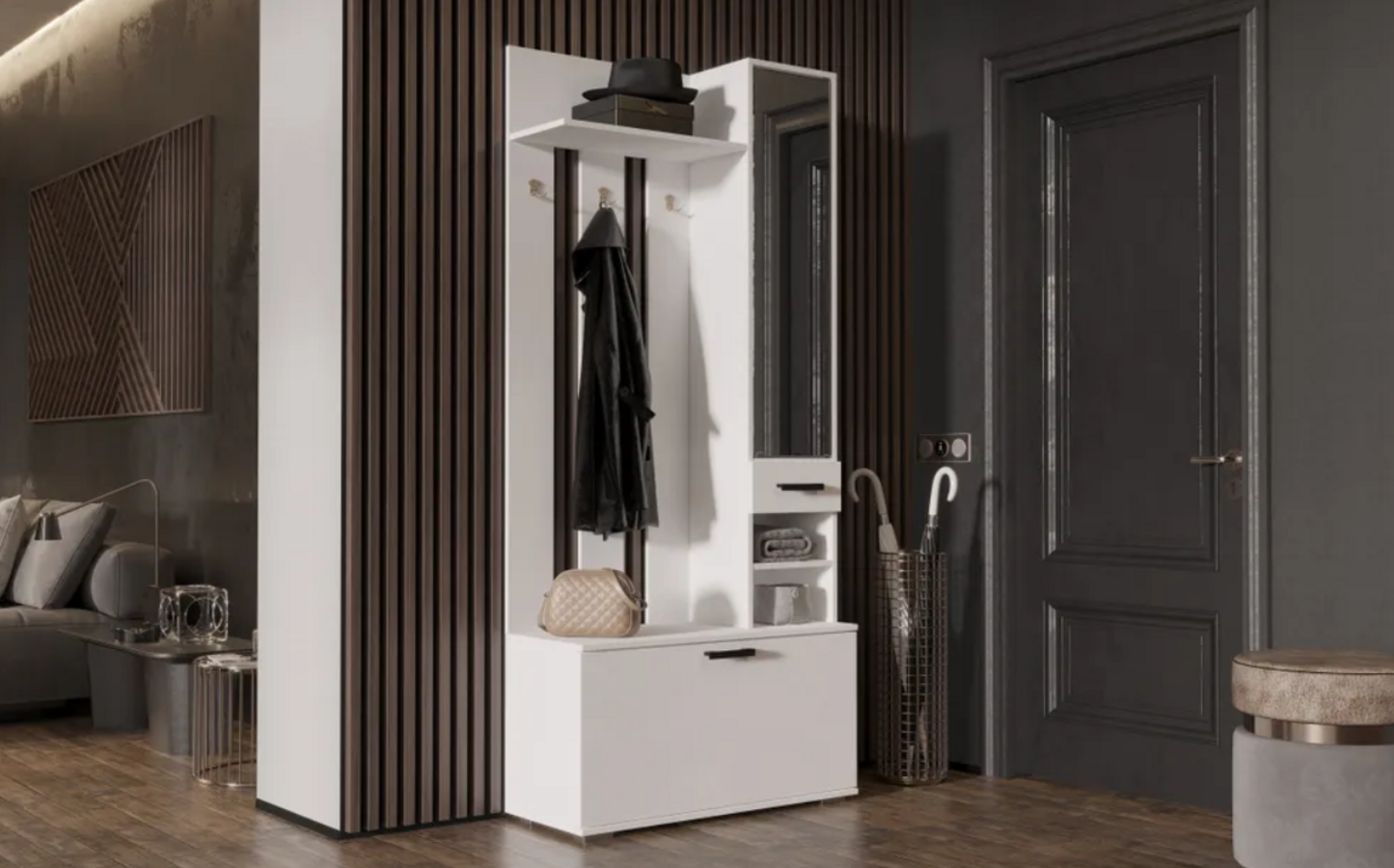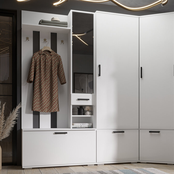 Комплект прихожей, прихожая Ника с зеркалом "Эра" Белая, ш91*в203*г35.4 см