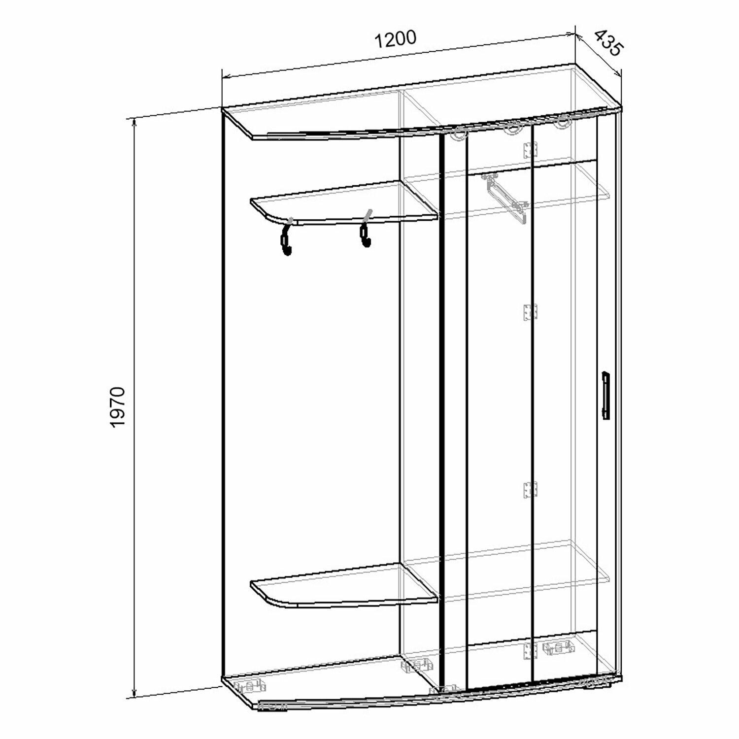 СохранитьПрихожая Агат 4 с зеркалом цвет: венге/бодега светлая зеркало слева размер: 1200х435х1970 мм. интересное: