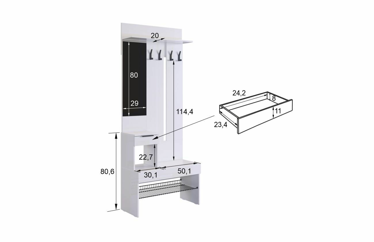 Прихожая Basko, комплект мебели в прихожую, Белое дерево, 80,2х195х34,6 см (ШхВхГ)