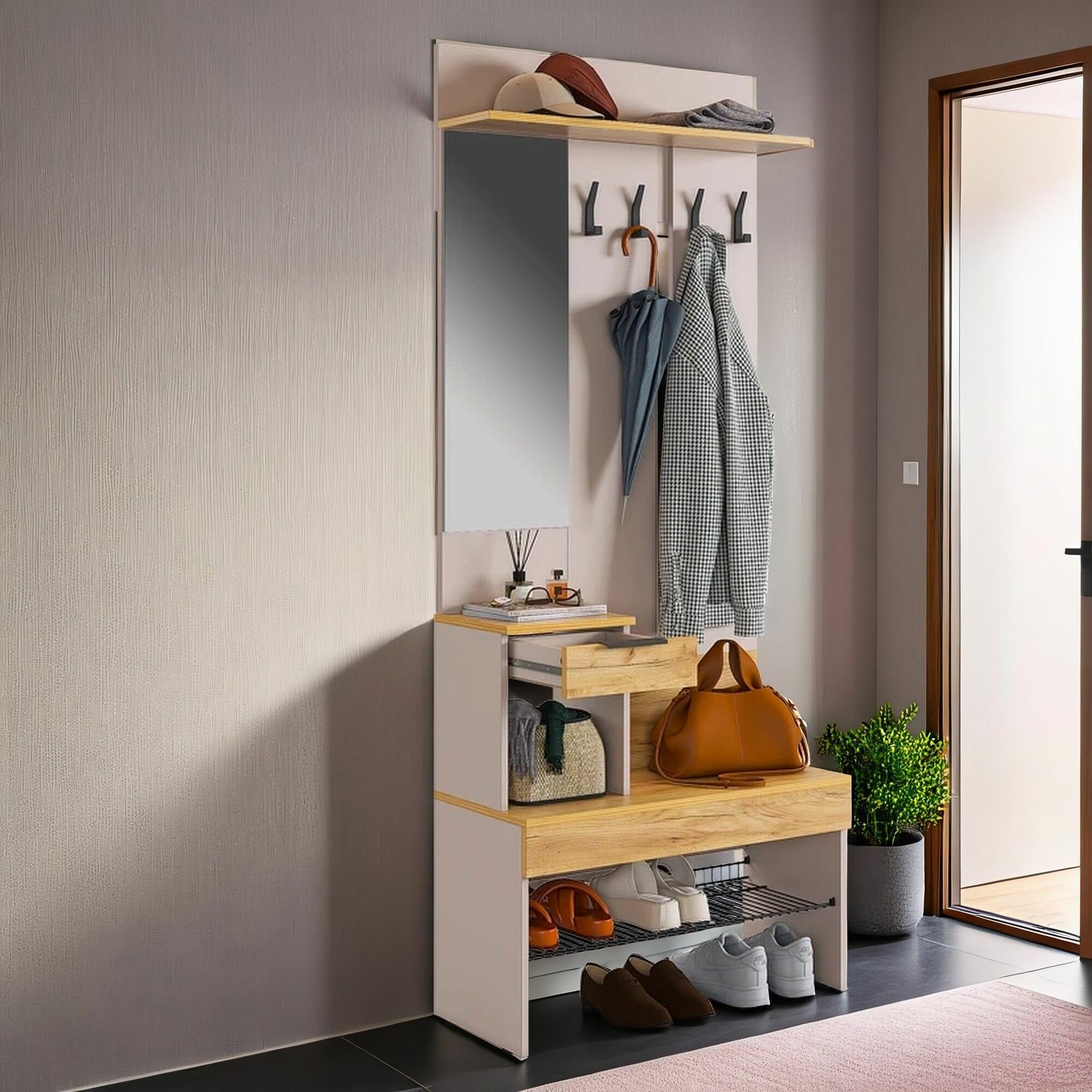 Купить Прихожая Basko, комплект мебели в прихожую, Кашемир/дуб крафт золотой, 80,2х195х34,6 см (ШхВхГ)