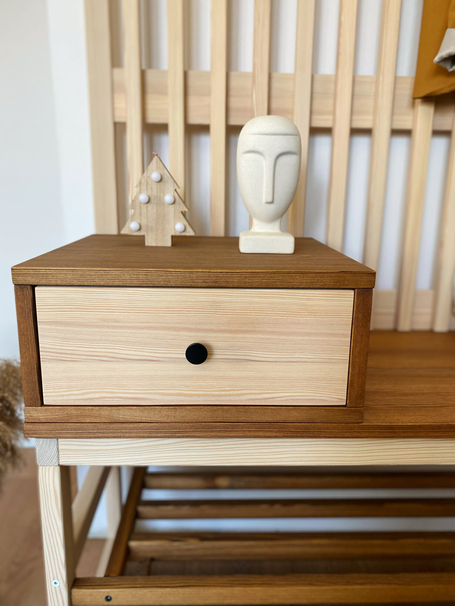 Прихожая деревянная с обувницей из массива Лиственницы, черный + орех, минимализм 185х76х30