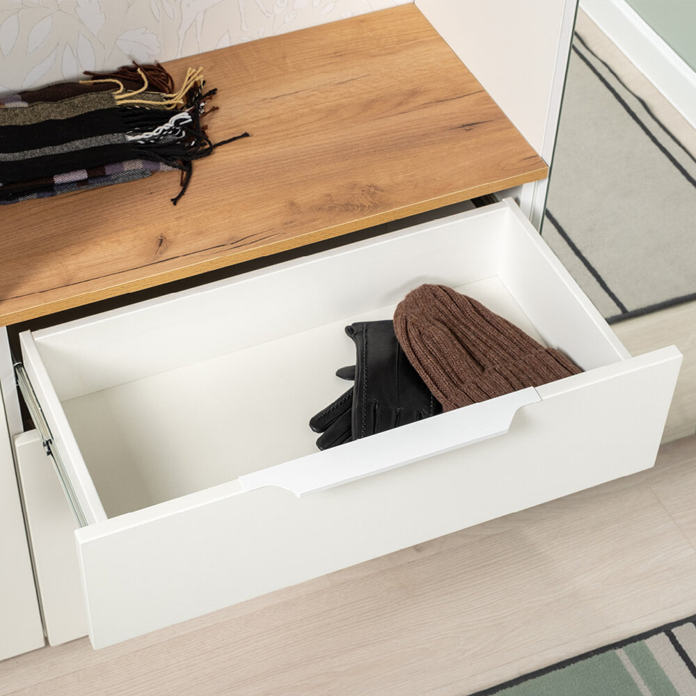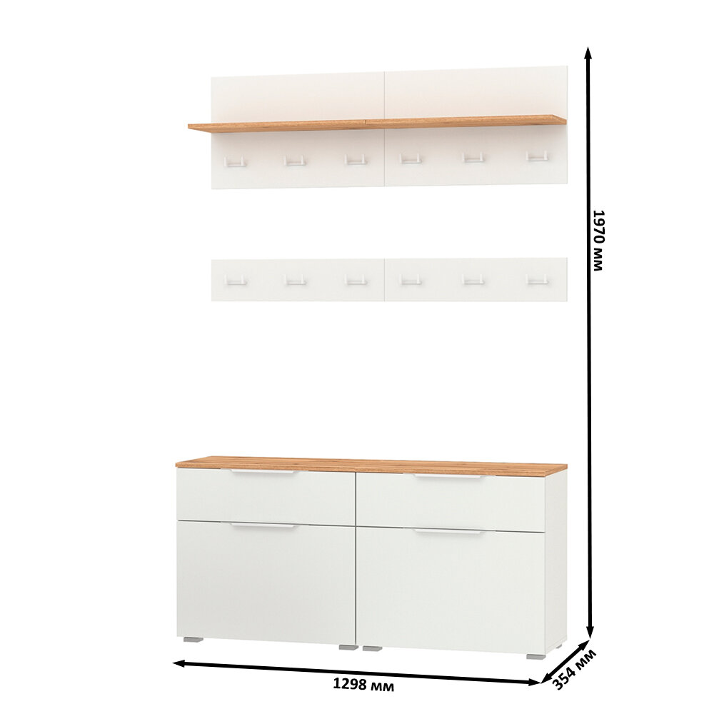 Набор мебели в прихожую Моби Октава № 7 цвет белый шагрень/дуб крафт золотой, 129,8х35,4х197 см интересное: