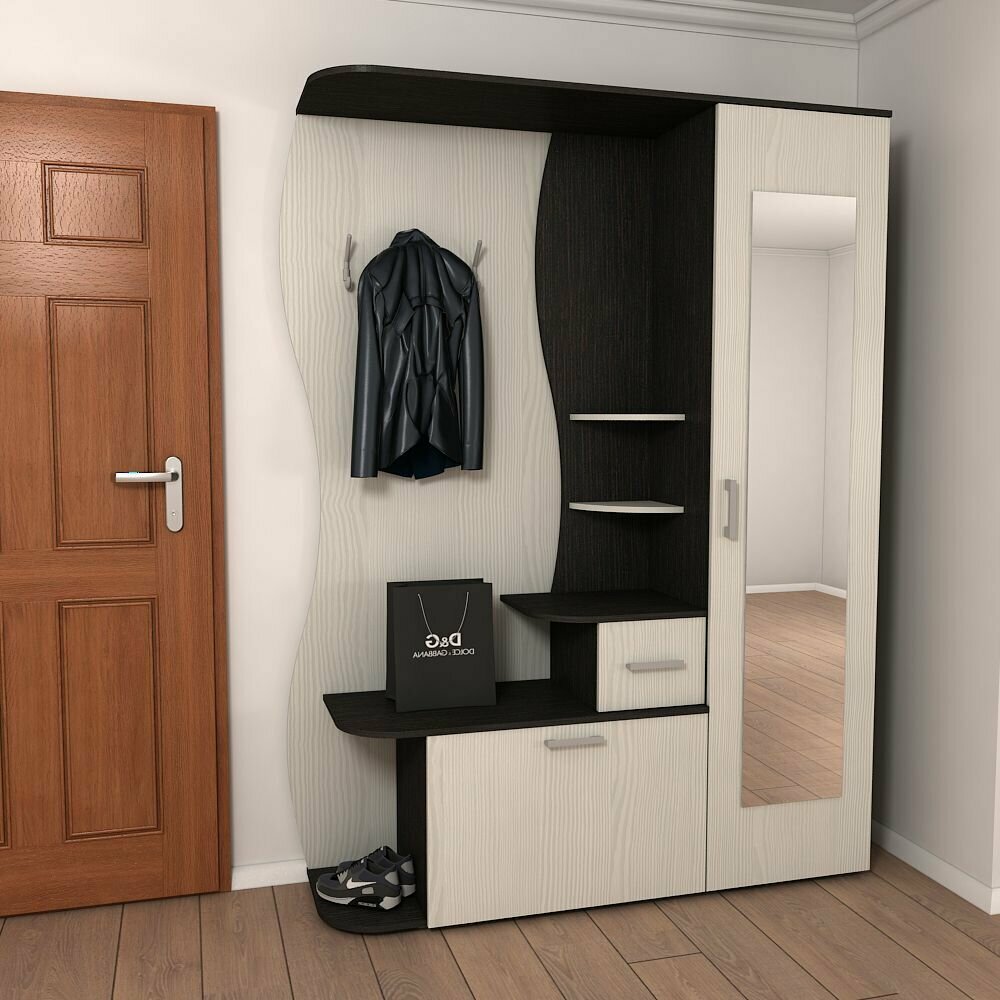 Прихожая Силует 3 с зеркалом цвет: венге/бодега белая зеркало слева размер: 1550х420х2070 мм