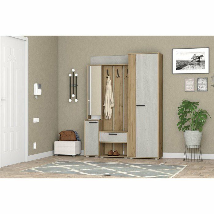 Комплект мебели для прихожей "Прайм-2" Дуб Крафт Золотой/Бетонный Камень интересное: