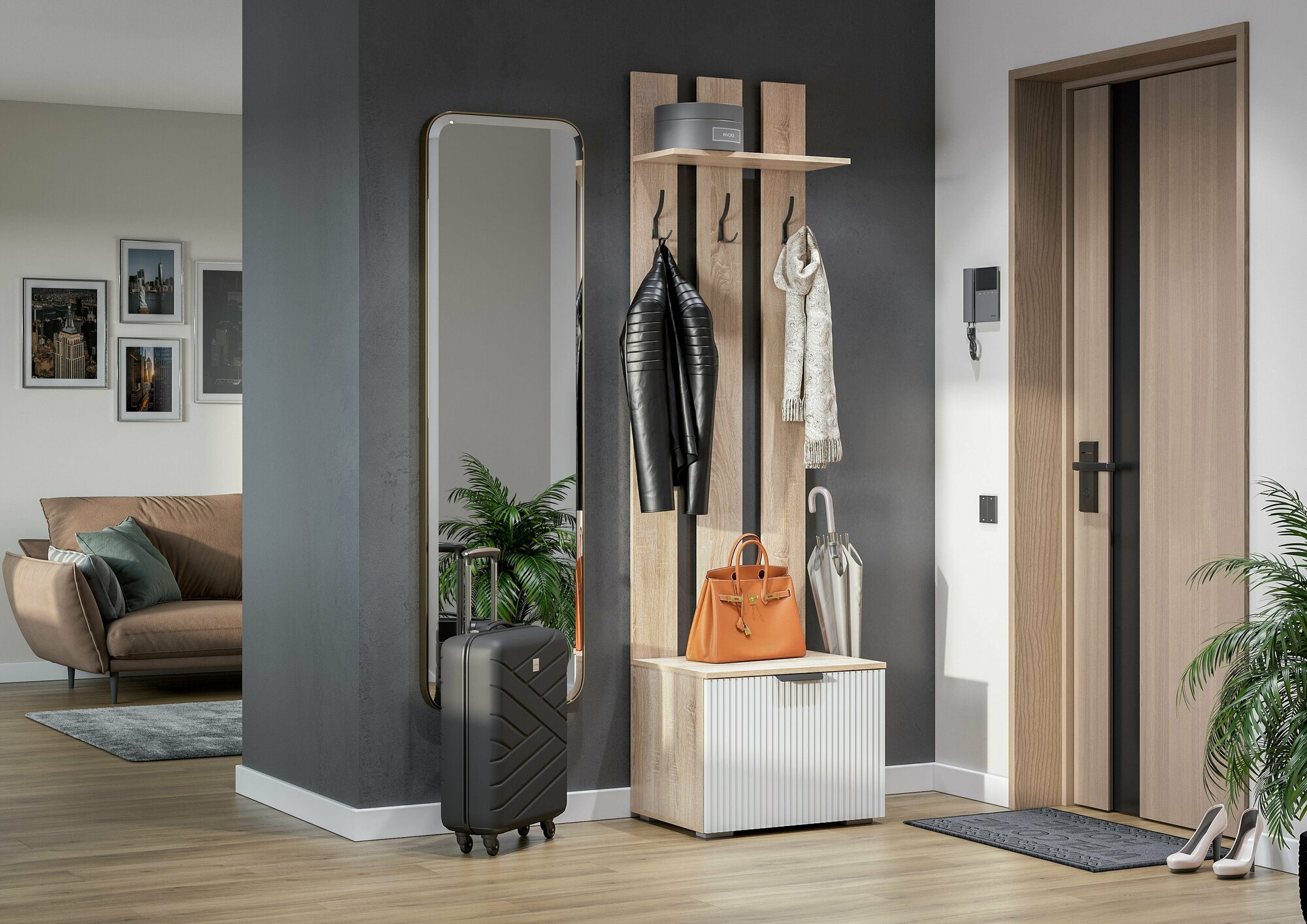 Прихожая Денвер, 800х360х1925, Графит/Дуб гранж