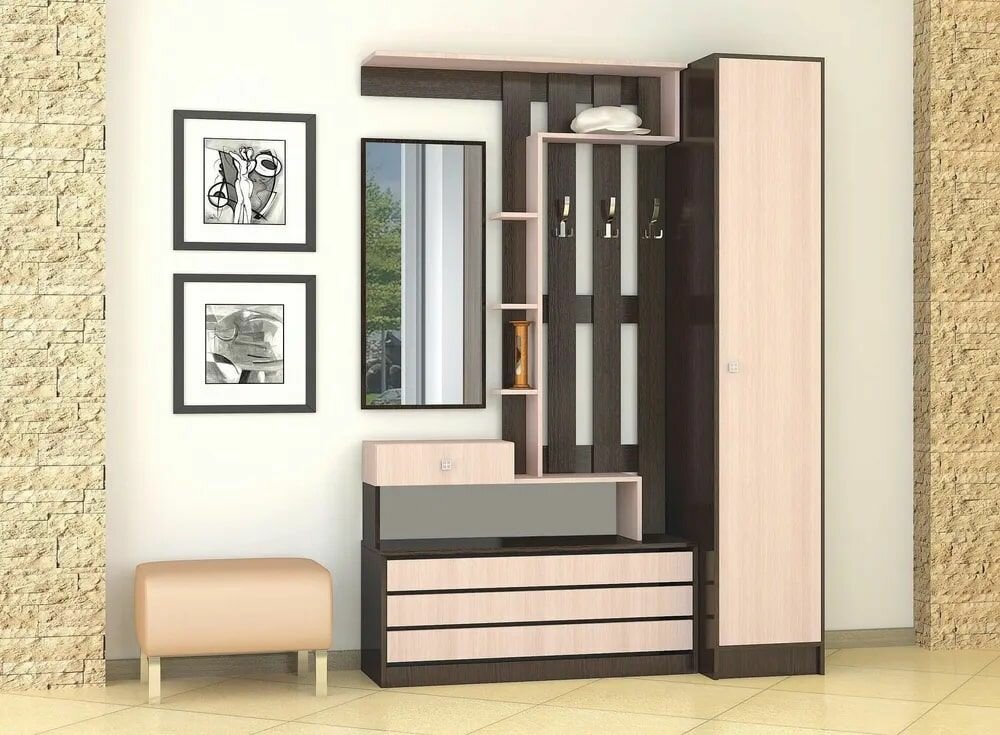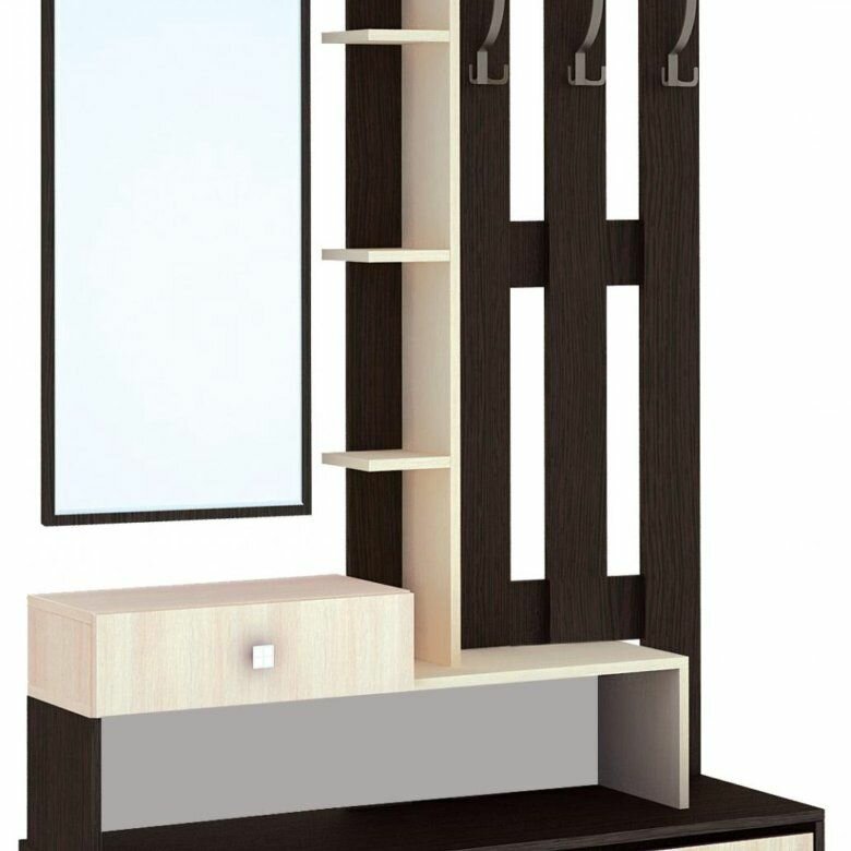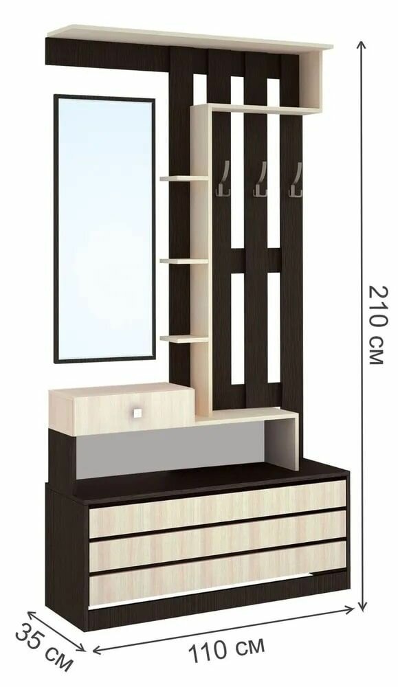 Прихожая Ямайка центральная секция Венге/дуб молочный ЛДСП с полками, ящиками, крючками, тумбой, зеркалом, для дома, дачи 1100х350х2100 тэкс интересное: