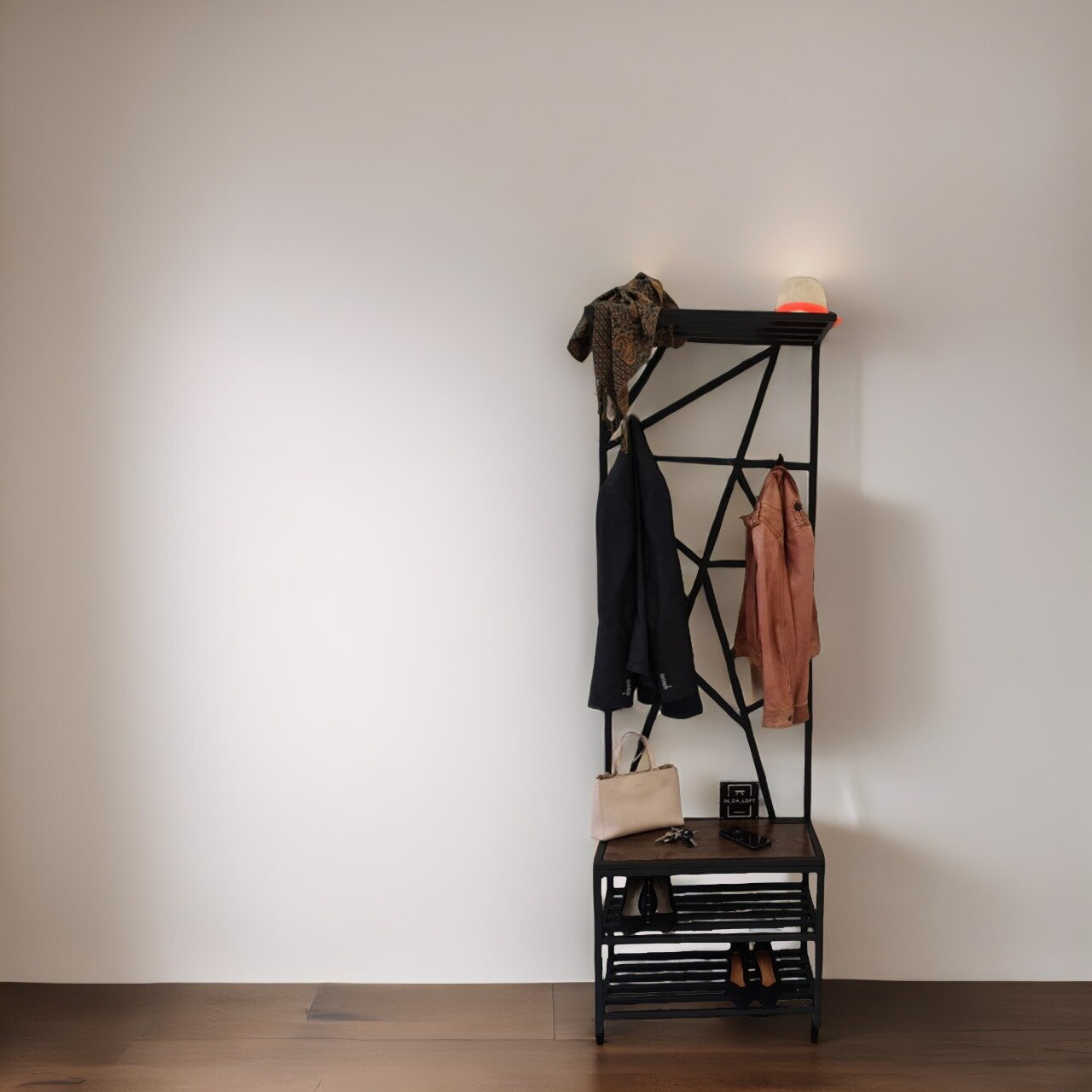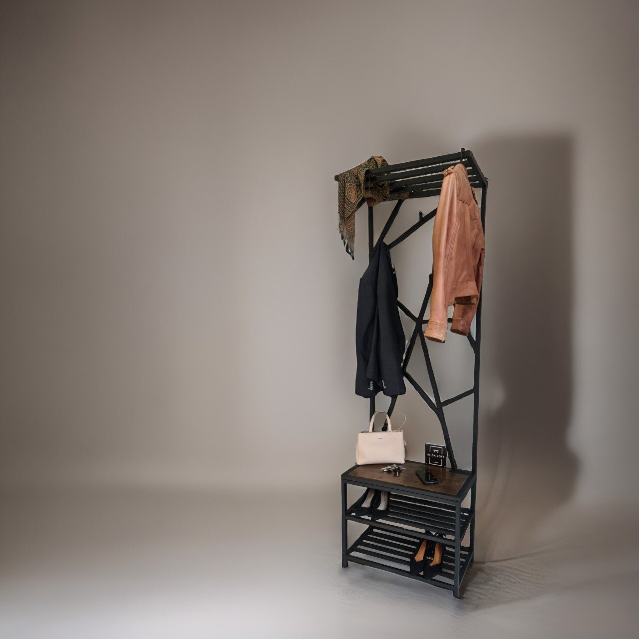 Прихожая Лофт из МЕТАЛЛА с МЯГКОЙ СИДУШКОЙ Прихожая для узкого коридора 65*34*200(В) см