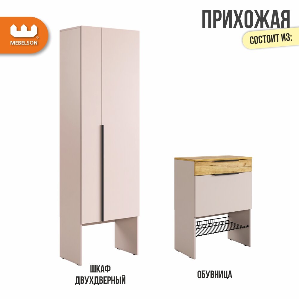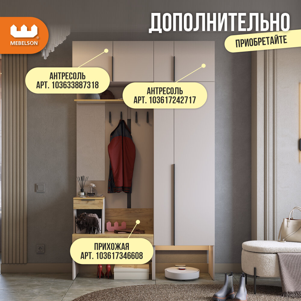 Модульная прихожая "Баско" К8, цвет Кашемир/дуб крафт золотой, 120*35*195 см, Mebelson интересное: