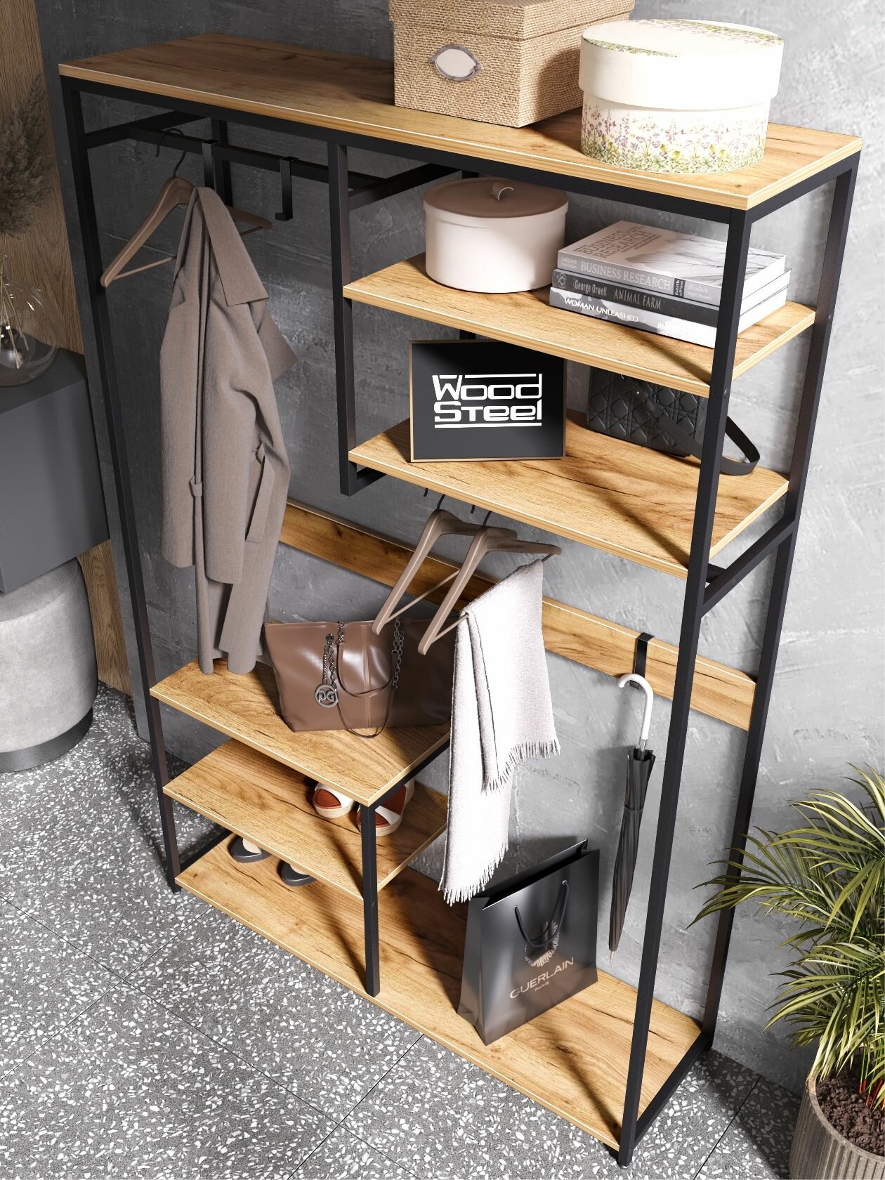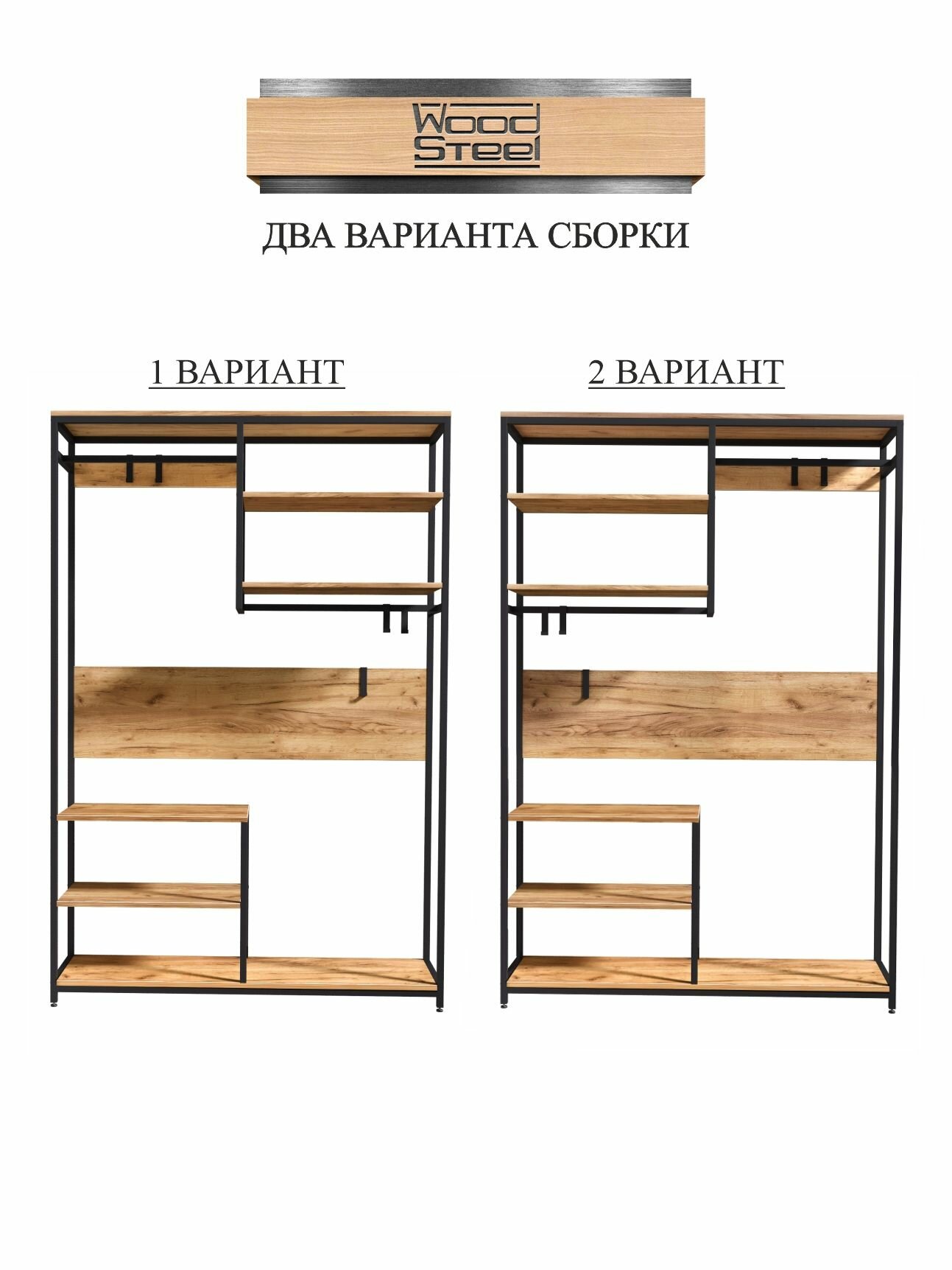 Прихожая WOODSTEEL "Urban", 180x118x35 см, стиль Лофт, ЛДСП, цвет дуб крафт золотой интересное: