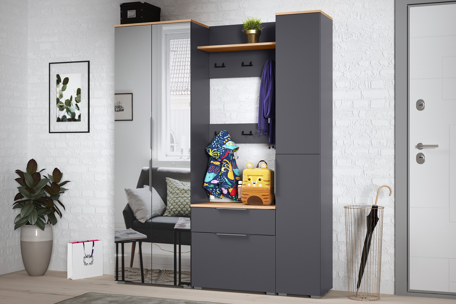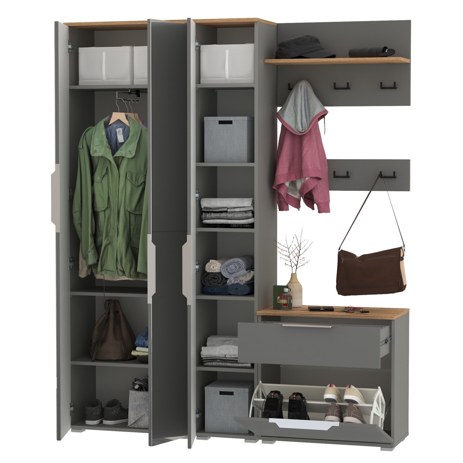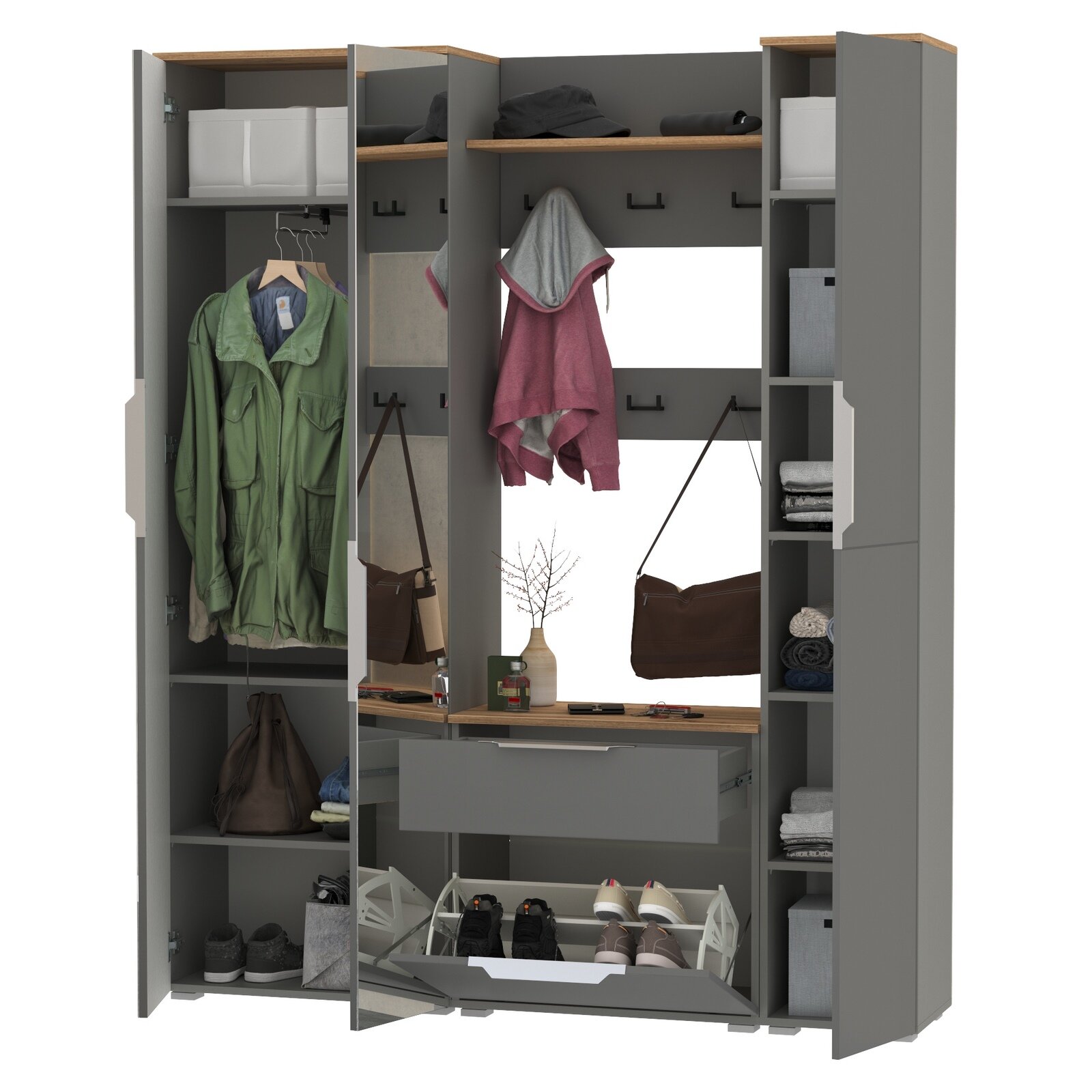 Прихожая Моби Октава 15-123Н цвет серый графит/дуб крафт золотой, 161,5х35,4х197,6 см интересное: