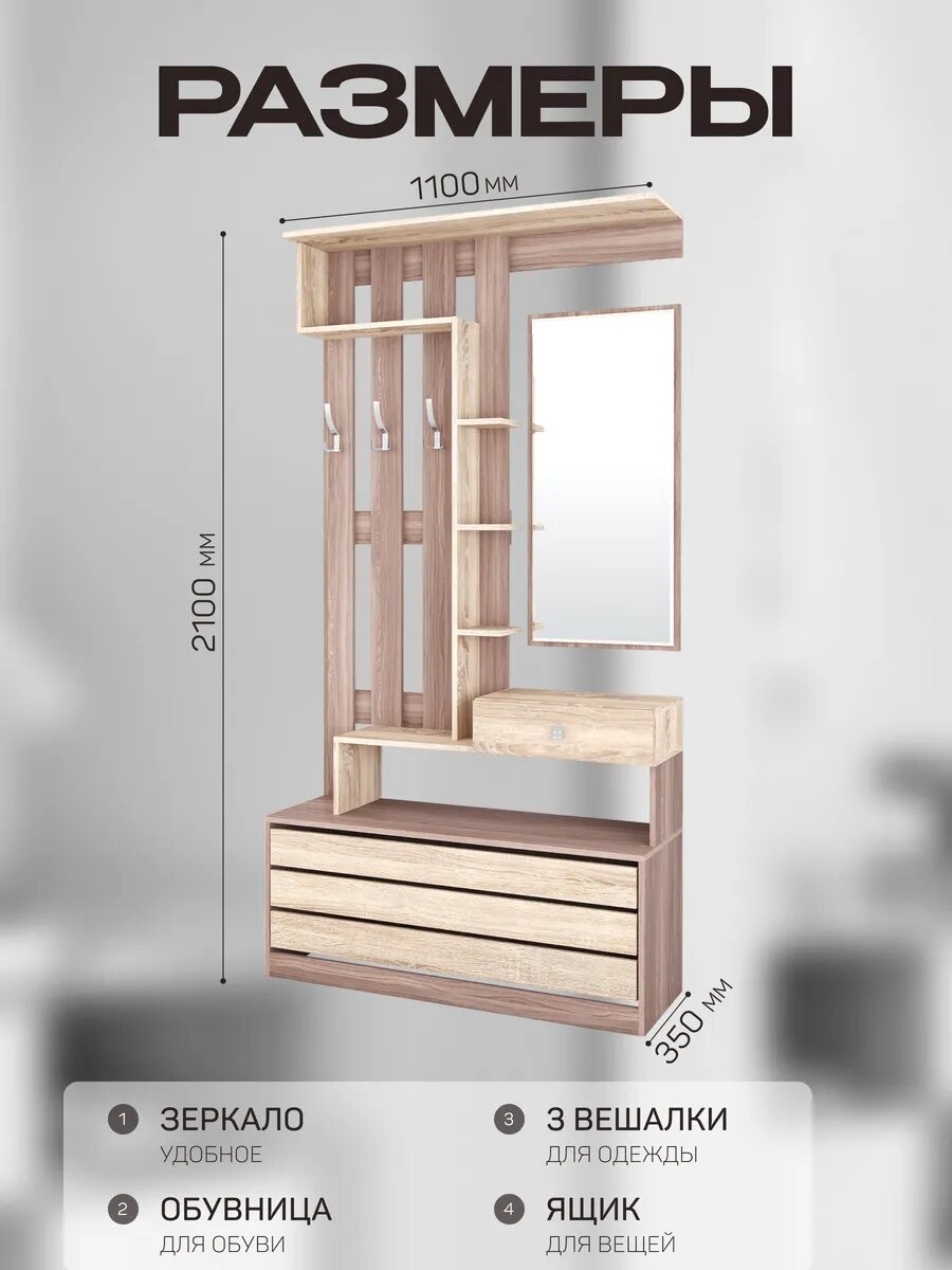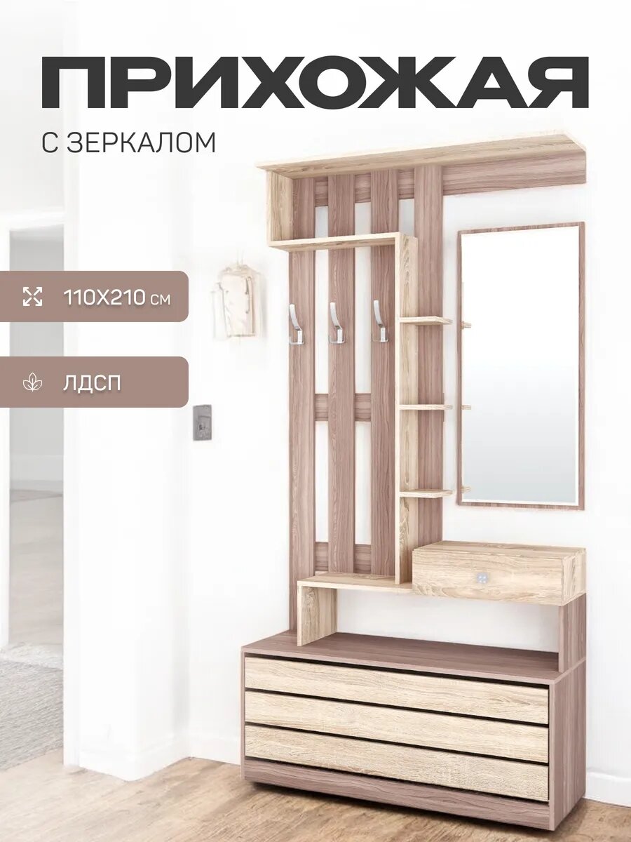 Прихожая Ямайка ЯПЦС-1, Центральная секция с зеркалом, ЛДСП, цвет- ясень шимо/дуб сонома,110*210*35 см интересное: